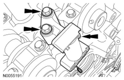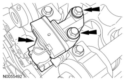 57. Install the new VCT bolt and the exhaust camshaft bolt and the original washers. Tighten in 4 stages.
