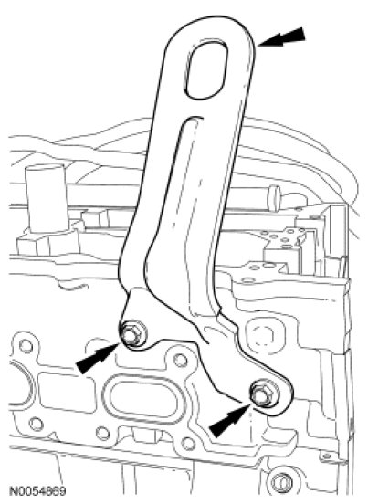 NOTE: On early build engines, the timing chain rides on the inner side of the RH timing chain guide. Late build engines are equipped with a different design RH timing chain guide that requires the timing chain to ride on the outer side of the RH timing chain guide. For service, all replacement RH timing chain guides will be the late build design.