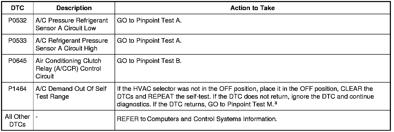 a PCM DTC P1464 will set if the function selector is in PANEL with A/C button pressed, DEFROST or MAX A/C mode when the on-demand self test is being run.