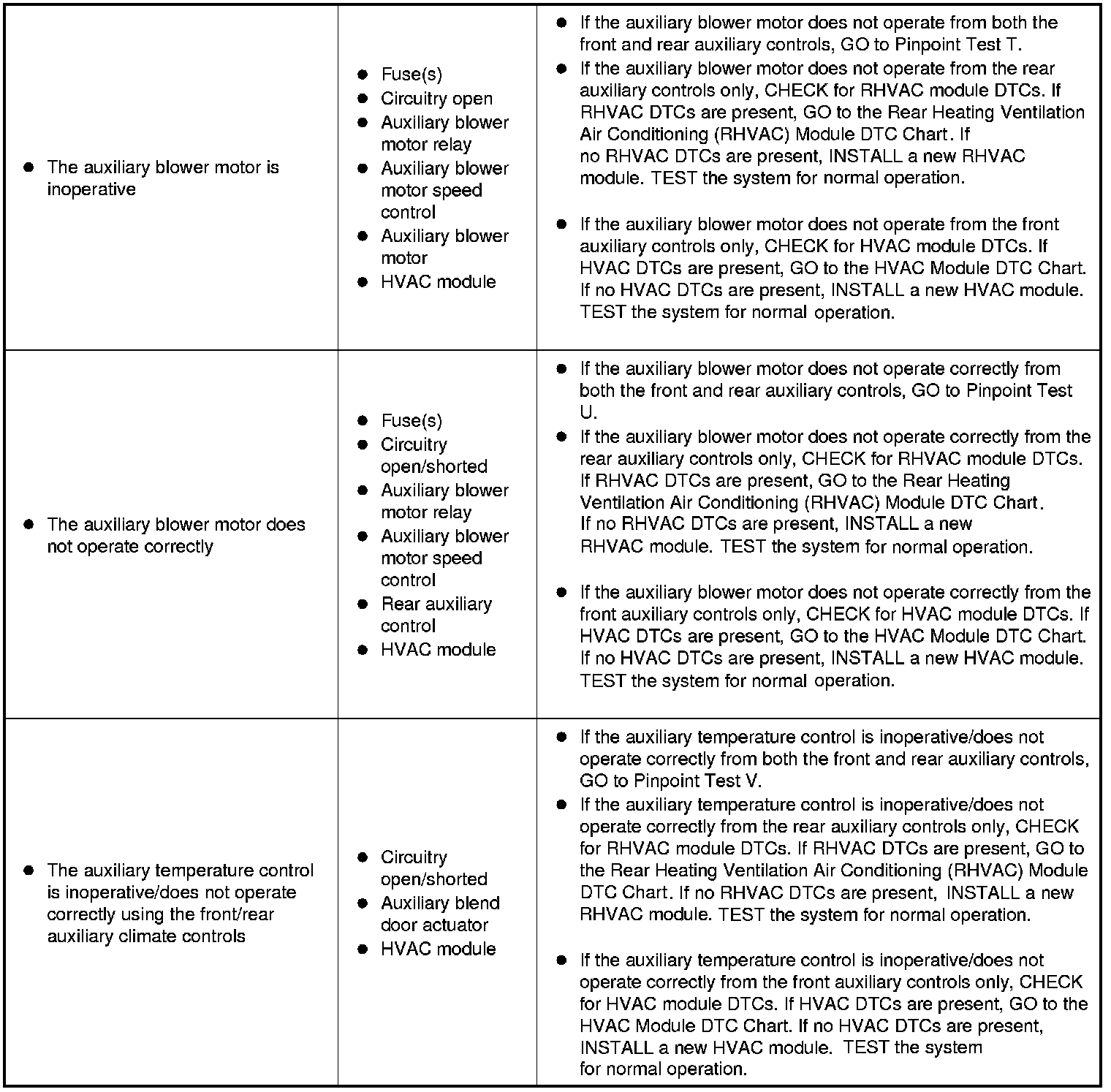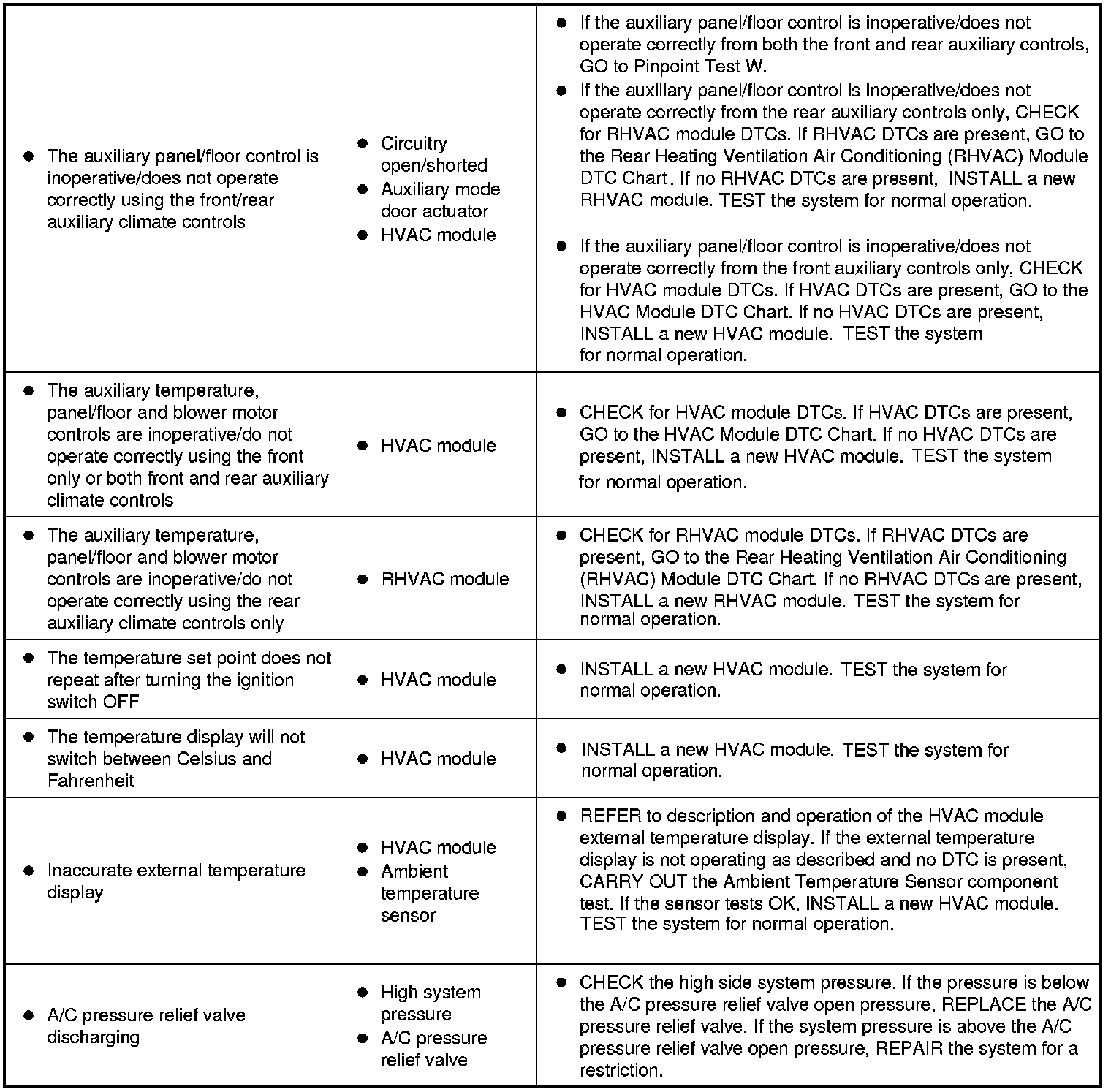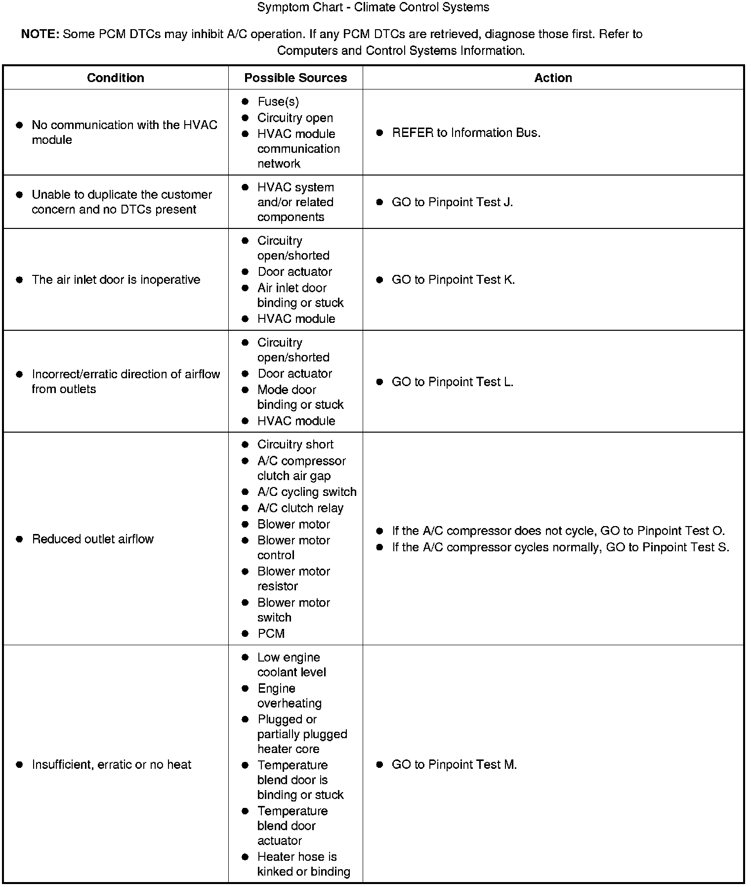 Symptom Chart - Climate Control Systems