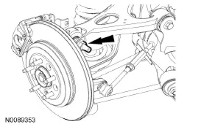 NOTE: To allow for rear camber adjustment, the upper arm is slotted at the upper arm-to-wheel knuckle joint. Rear camber is adjusted from the factory with the wheel knuckle pushed inboard for maximum negative camber. If the camber is more negative than specification, the top of the wheel knuckle should be positioned outboard to adjust the rear camber to the positive position.