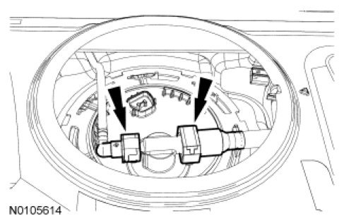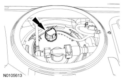 Disconnect the fuel tank jumper tube-to-FP module quick connect coupling. For additional information, refer to Quick Connect Coupling Quick Connect Coupling.