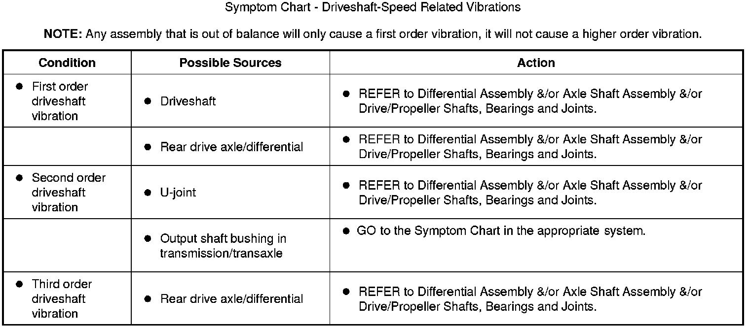 Symptom Chart - Driveshaft-Speed Related Vibrations