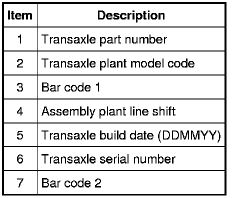 Transaxle Identification Tag