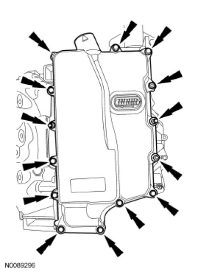 2. NOTICE: Inspect the 20-pin solenoid body connector seal to make sure that the seal is on the inside of the main control cover or a transmission fluid leak will occur.
