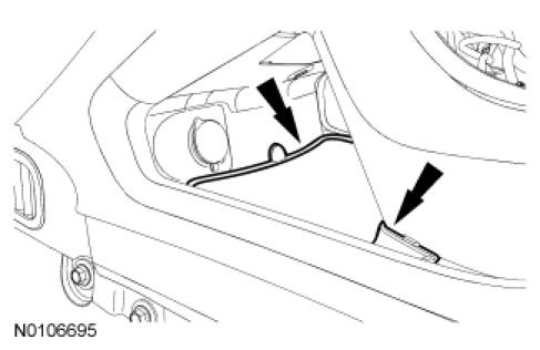 6. Pull the LH center console lower trim panel away from the center console to release the retaining clip. Position aside the LH center console lower trim panel to access the selector lever cable.