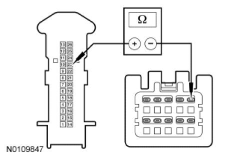 - Measure the resistance between selector lever harness C3245-1, circuit CET53 (BU/OG) and SJB C2280F-23, circuit CET53 (BU/OG).