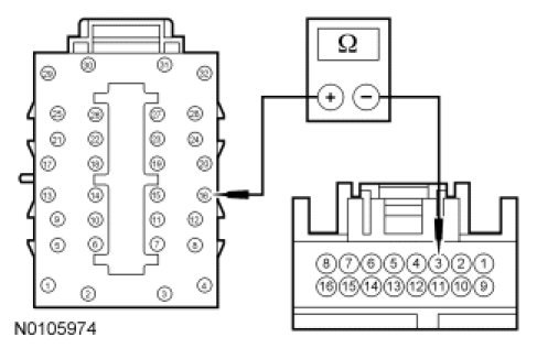 - Measure the resistance between LH front window control switch C504-3, circuit CBP41 (BU), harness side and SJB C2280D-16, circuit CBP41 (BU), harness side.