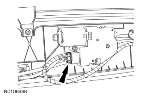 1. Lower the headliner. For additional information, refer to Headliner Service and Repair.