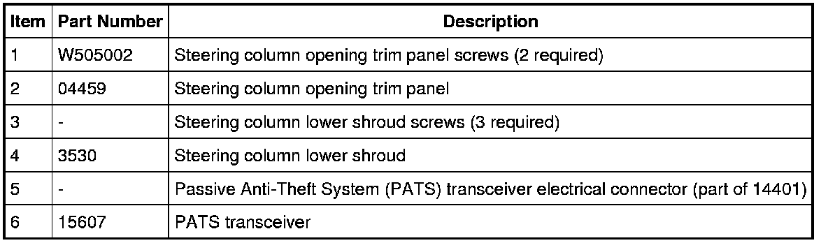 4. NOTE: Replacement of the PATS transceiver does not require the PATS keys to be programmed into the Instrument Cluster (IC) again.