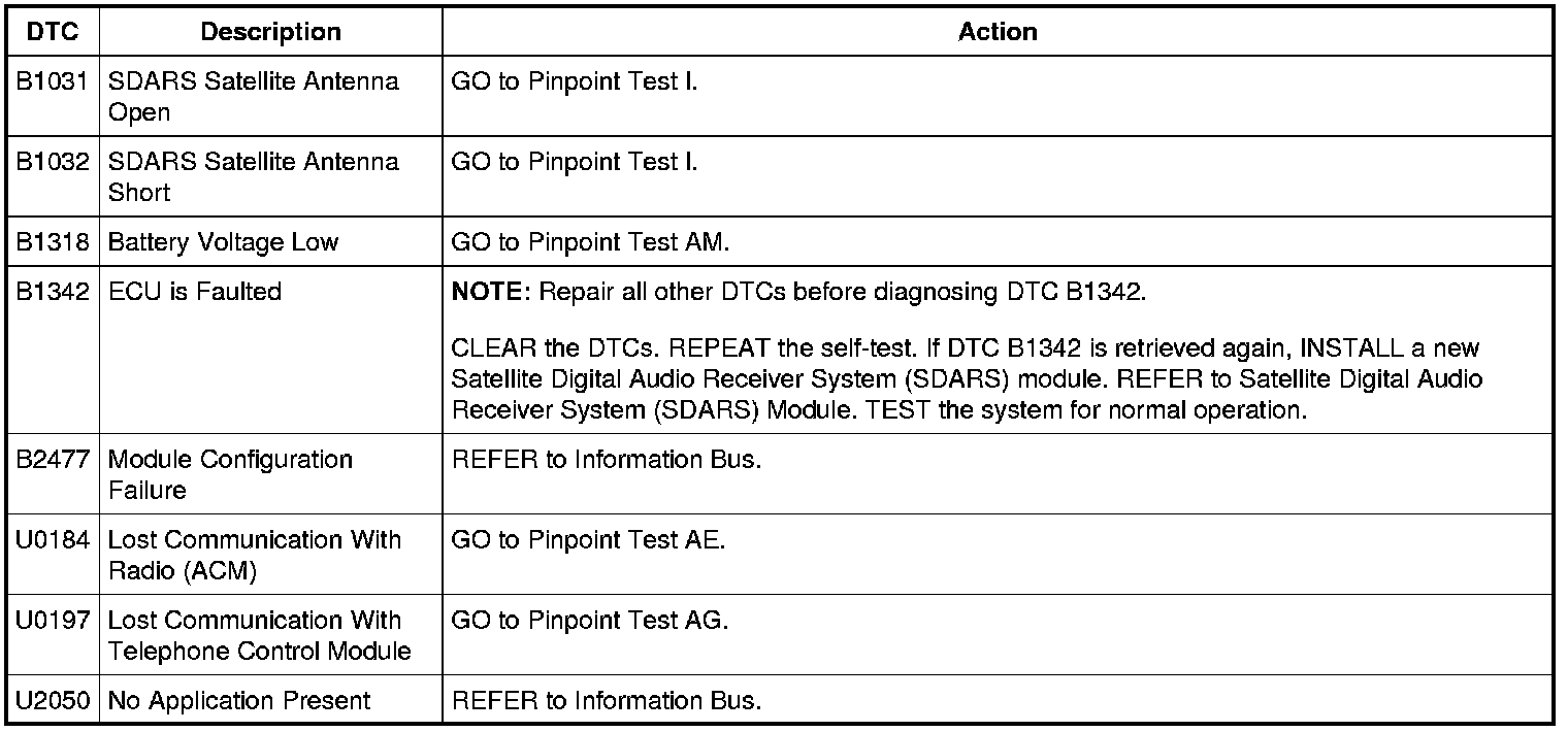 Satellite Digital Audio Receiver System (SDARS) Module DTC Chart