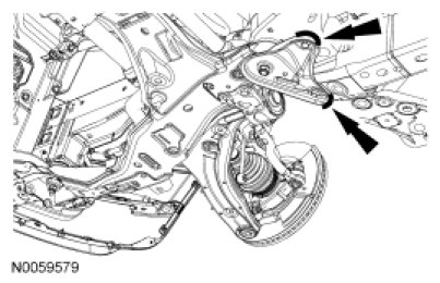 11. NOTE: The steering gear is not removed with the front subframe and must be positioned aside. Position the steering gear aside using mechanic's wire.