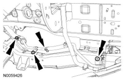 6. Remove the 3 power steering tube bracket bolts from the RH side of the subframe and position the power steering tube aside.