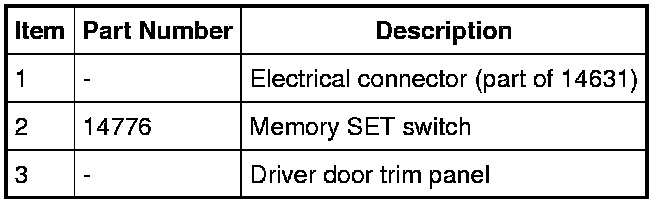 2. Disconnect the electrical connector, release the 4 tabs and remove the memory SET switch.