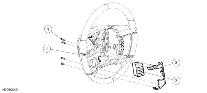 2. Remove the 4 screws and the steering wheel controls bezel.