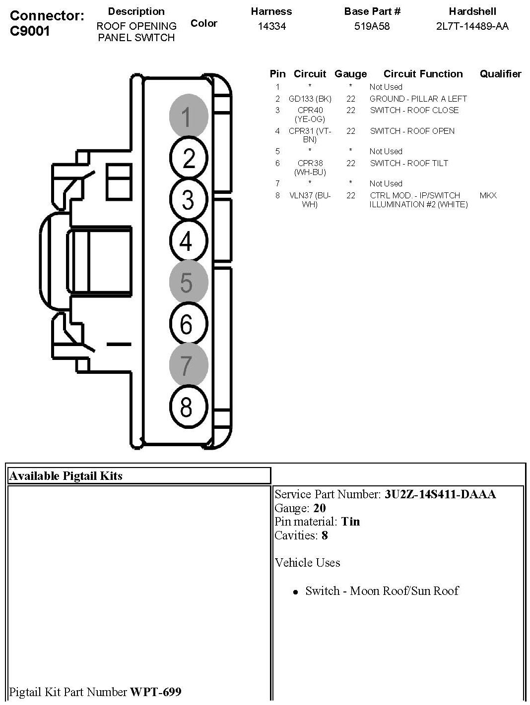 Sunroof / Moonroof Switch