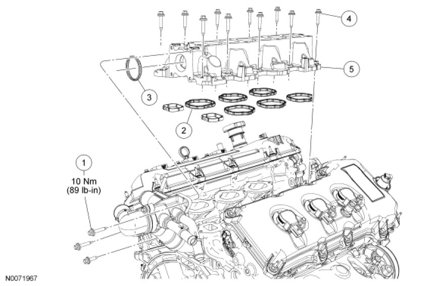 - Tighten in the sequence shown to 10 Nm (89 lb-in).