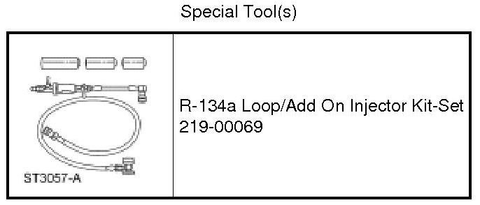 NOTE: If fluorescent leak detection dye is also to be added during A/C charging, the dye may be added to the dye/lubricant injector, from the R-134a Loop/Add On Injector Kit-Set, along with the PAG oil.