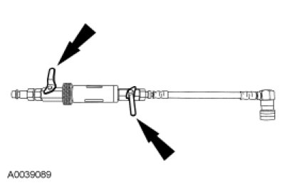 3. Verify that all the valves on the dye/lubricant injector are closed.