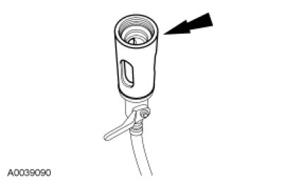 5. Install the dye/lubricant injector between the low-side service gauge port valve and the R-134a Refrigerant Management Machine or R-134a Manifold Gauge Set.