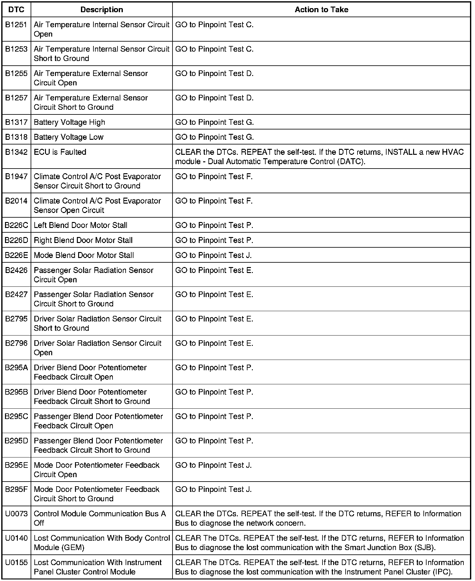 HVAC Module - Dual Automatic Temperature Control (DATC) DTC Chart