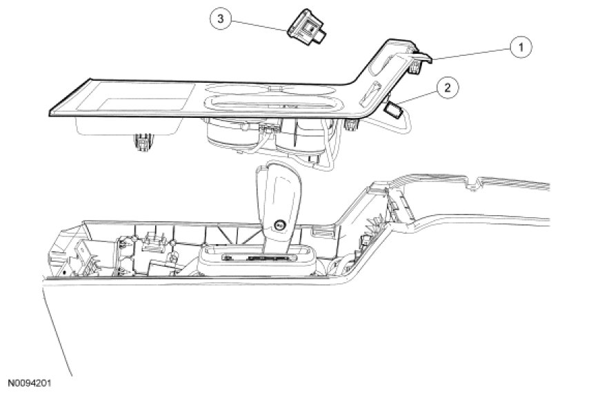 - Pull up on the rear of the floor console finish panel to release the clips.