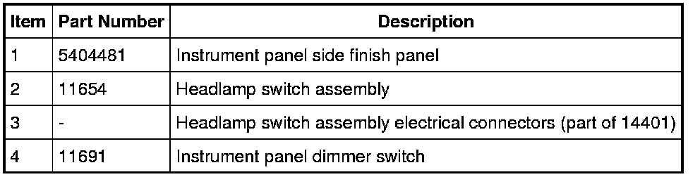 8. NOTE: The headlamp switch assembly is removed by pushing from behind.