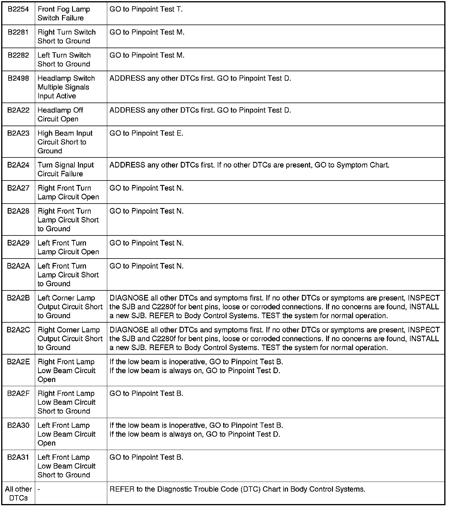 Smart Junction Box (SJB) DTC Chart
