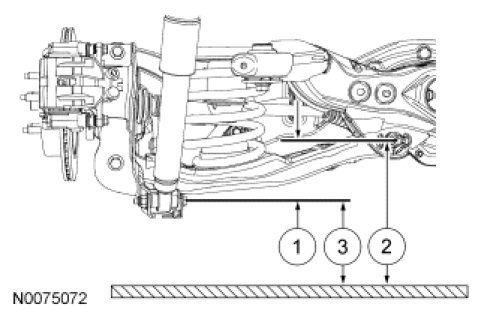 3. Subtract measurement 3 from measurement 2 to obtain the rear ride height.