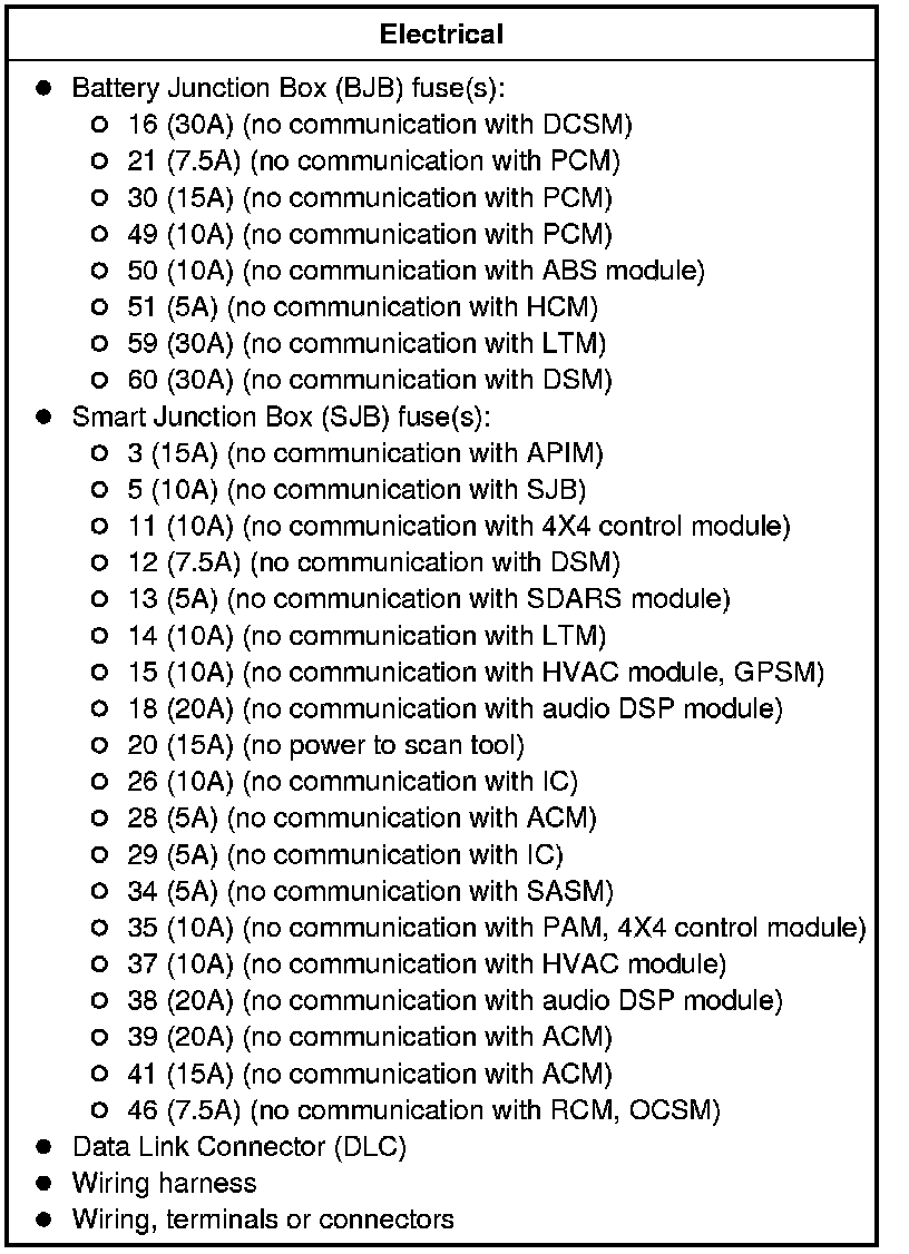- If a module fails to communicate during the network test, GO to Symptom Chart. Symptom Related Diagnostic Procedures