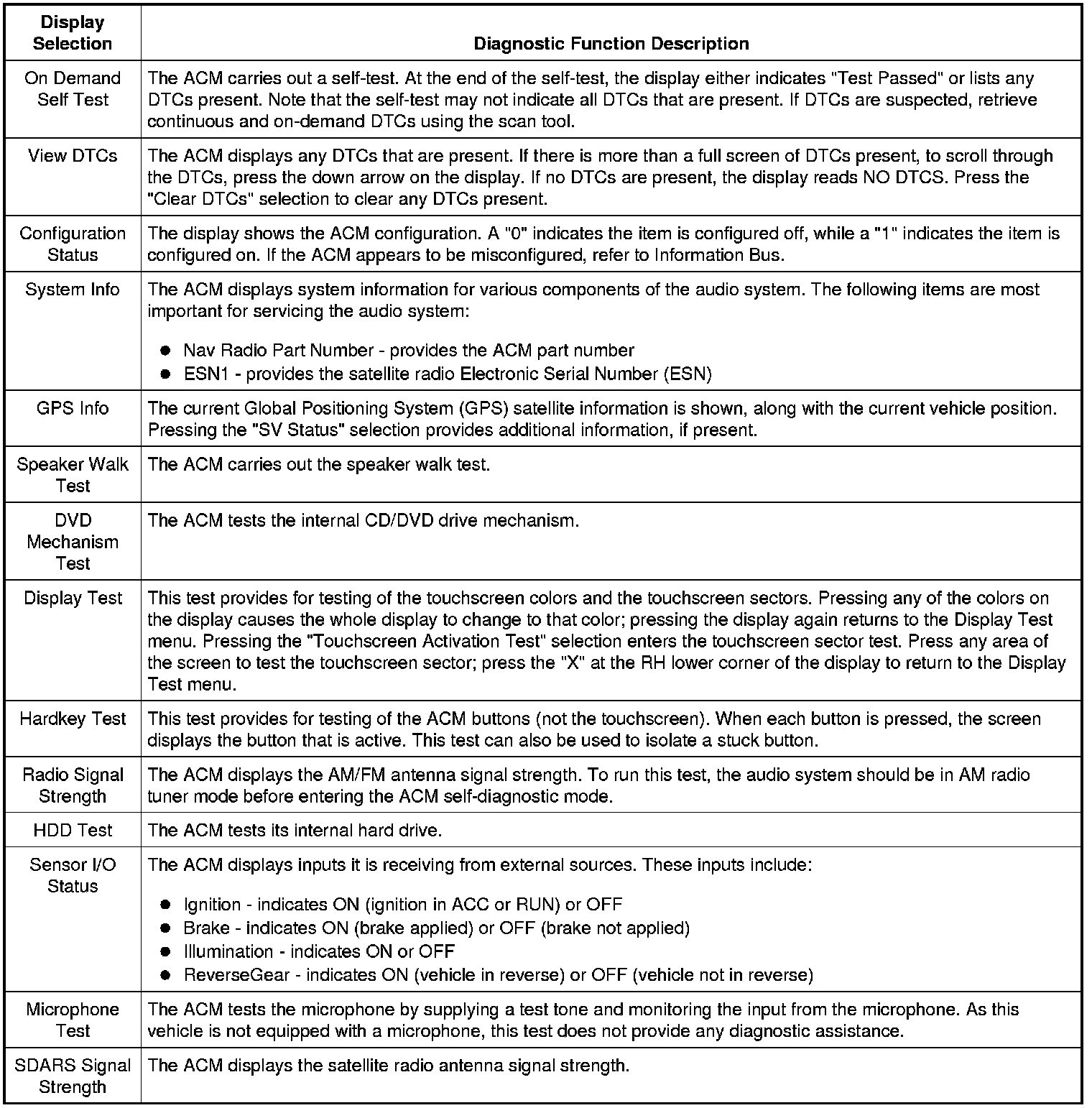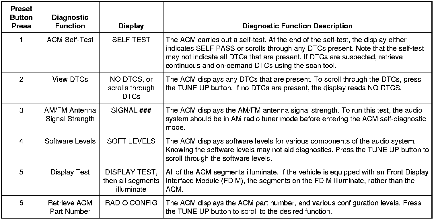 Audio Control Module (ACM) Self-Diagnostic Mode