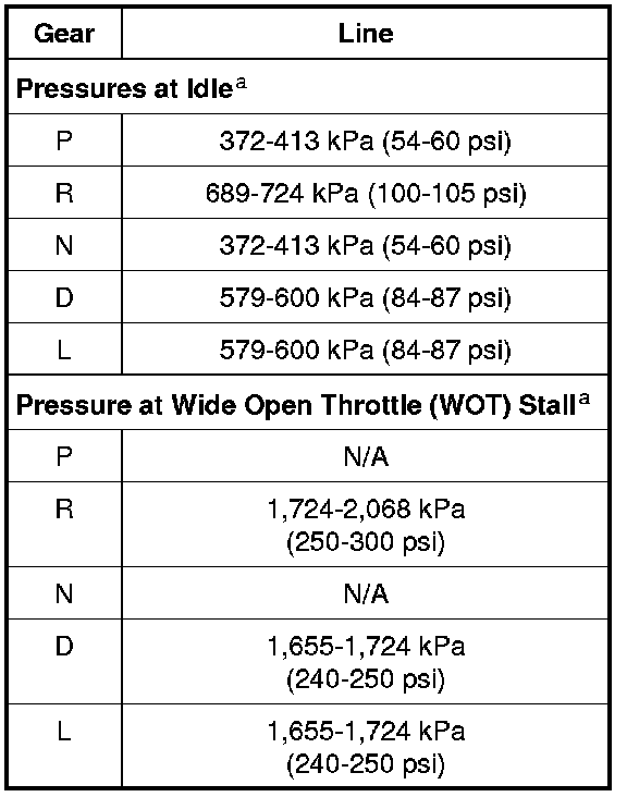 Line Pressure Chart