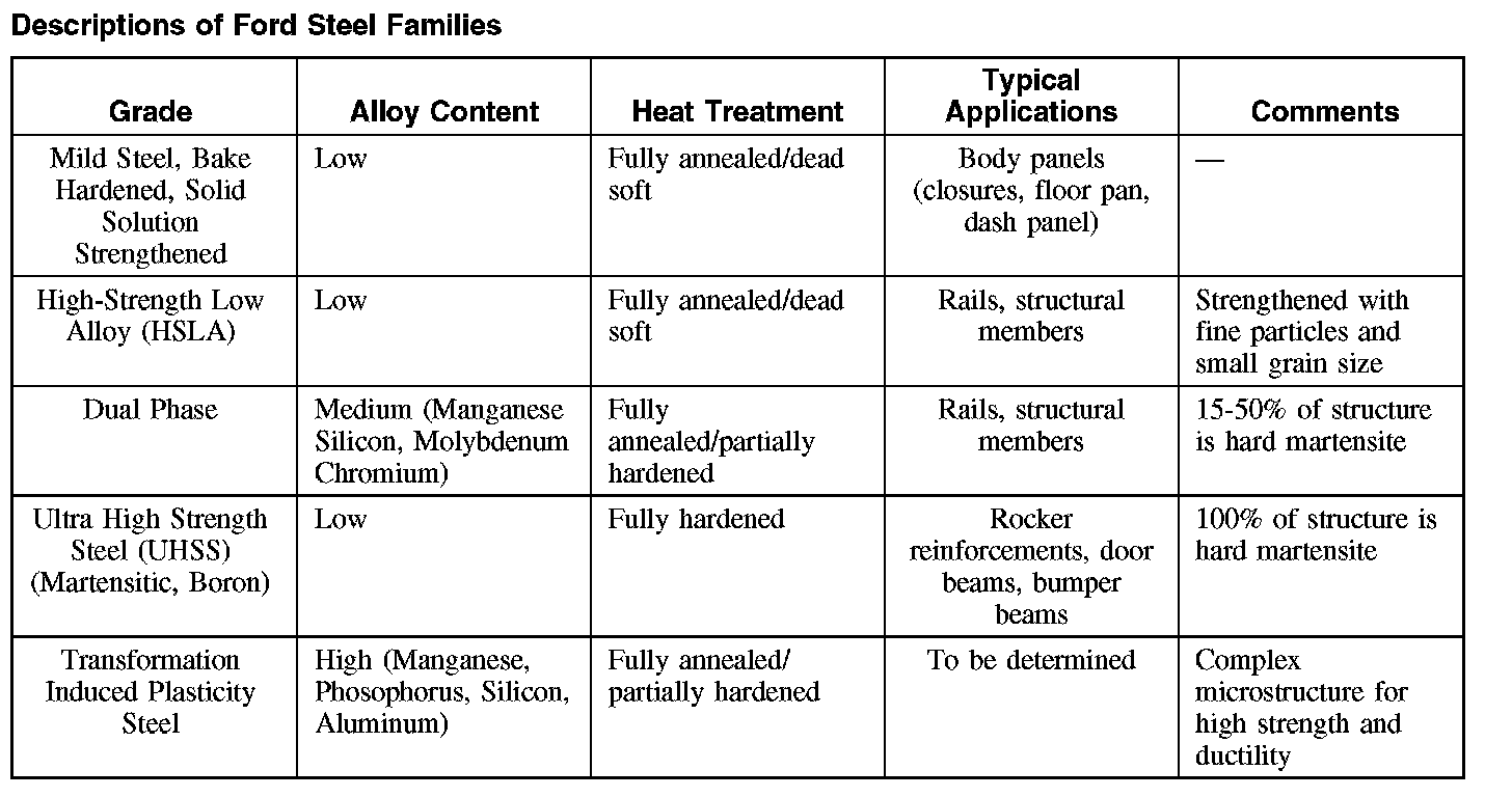 Ford Recommended Steel Repairability Matrix (Part 1):