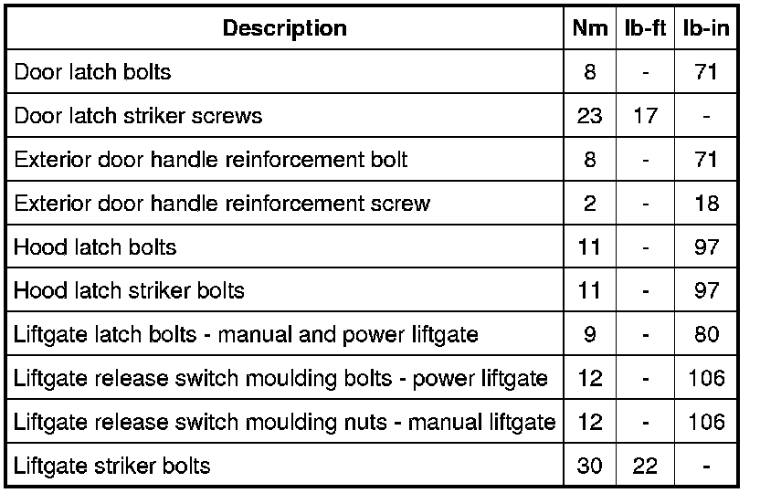 Torque Specifications