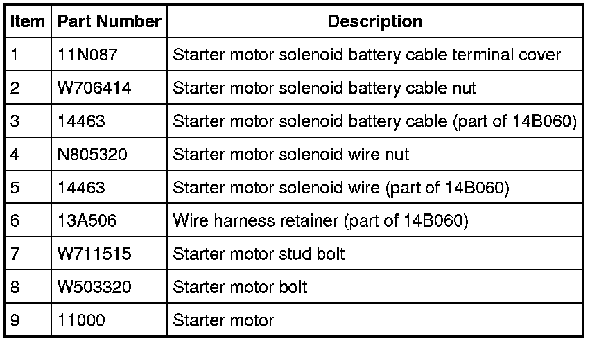 WARNING: Always disconnect the battery ground cable at the battery before disconnecting the starter motor battery terminal lead. If a tool is shorted at the starter motor battery terminal, the tool can quickly heat enough to cause a skin burn. Failure to follow this instruction may result in serious personal injury.