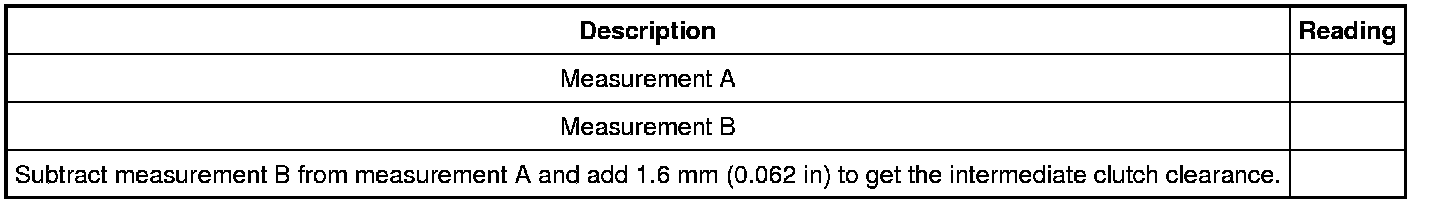 102. Subtract measurement B from measurement A and add 1.6 mm (0.062 in), to compensate for the thickness of the gasket, to get the intermediate clutch clearance. The clearance should be between 0.90 mm (0.035 in) and 2.24 mm (0.088 in). If the clearance is out of range, check the intermediate clutch pack for correct installation. If the intermediate clutch pack is correctly installed, install a new intermediate clutch pack.