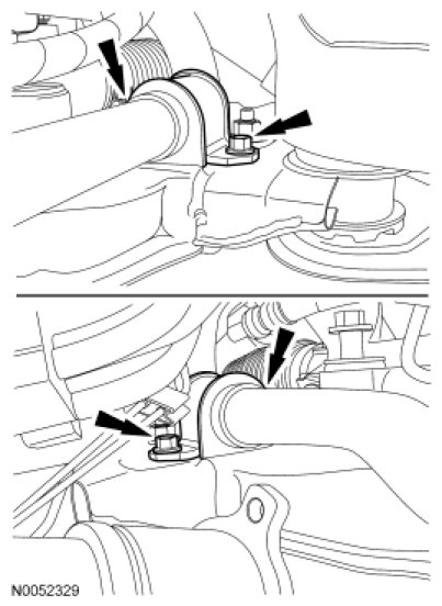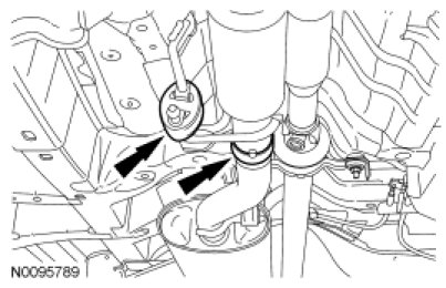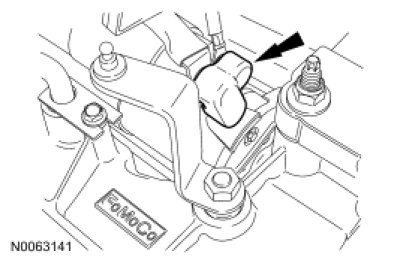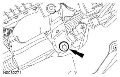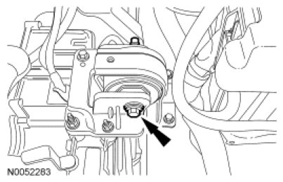 - Tighten the roll restrictor-to-transaxle through bolt to 115 Nm (85 lb-ft).