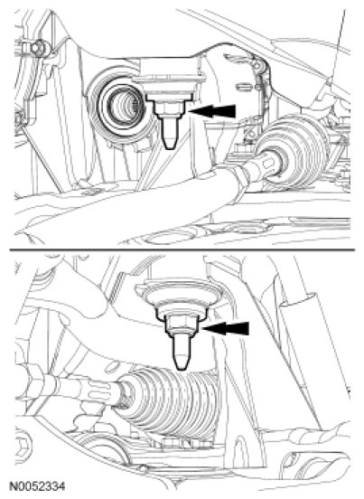 32. Install the LH and RH halfshafts. For additional information, refer to Drive Axles, Bearings and Joints.
