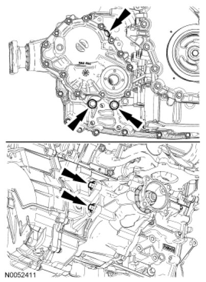 If the dowel pins were pulled out of the engine block during removal, install new dowel pins in the engine block.