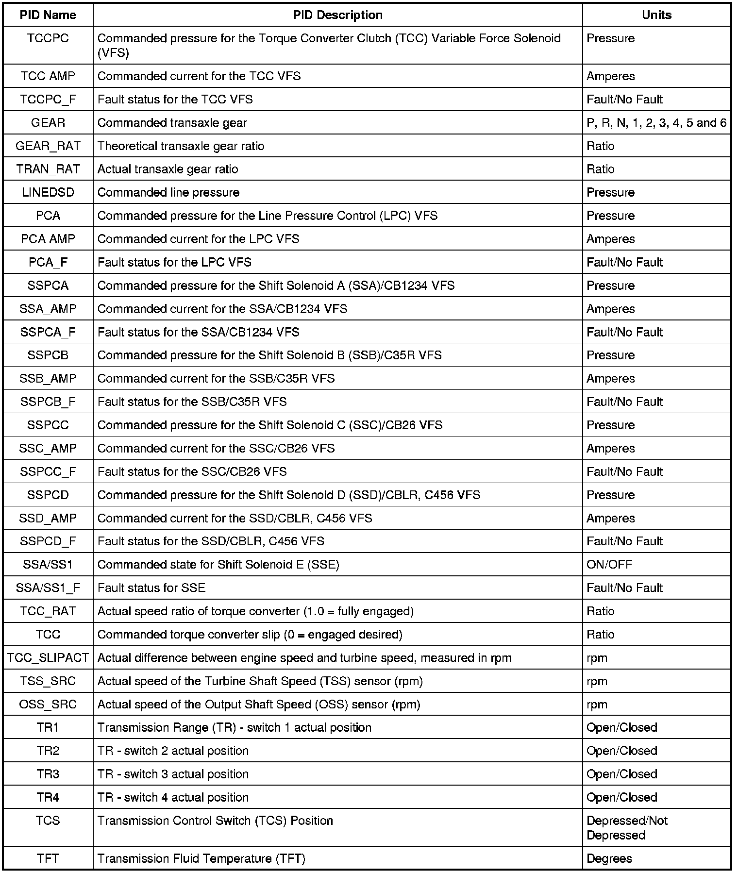 Diagnostic Parameters Identification (PID) Chart