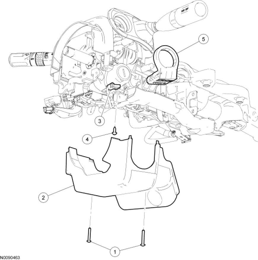 1. Remove the 2 screws and the lower steering column shroud.