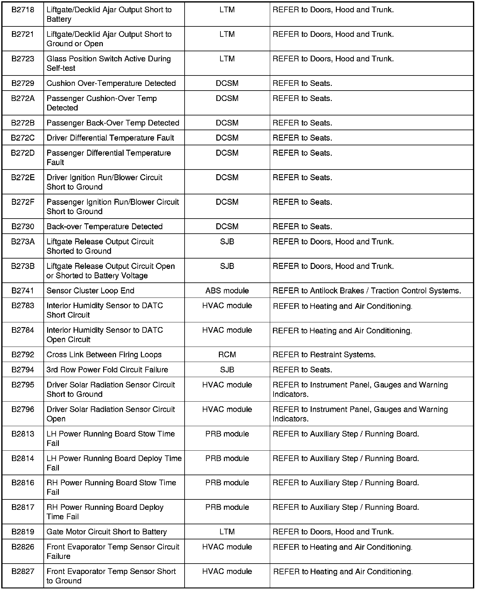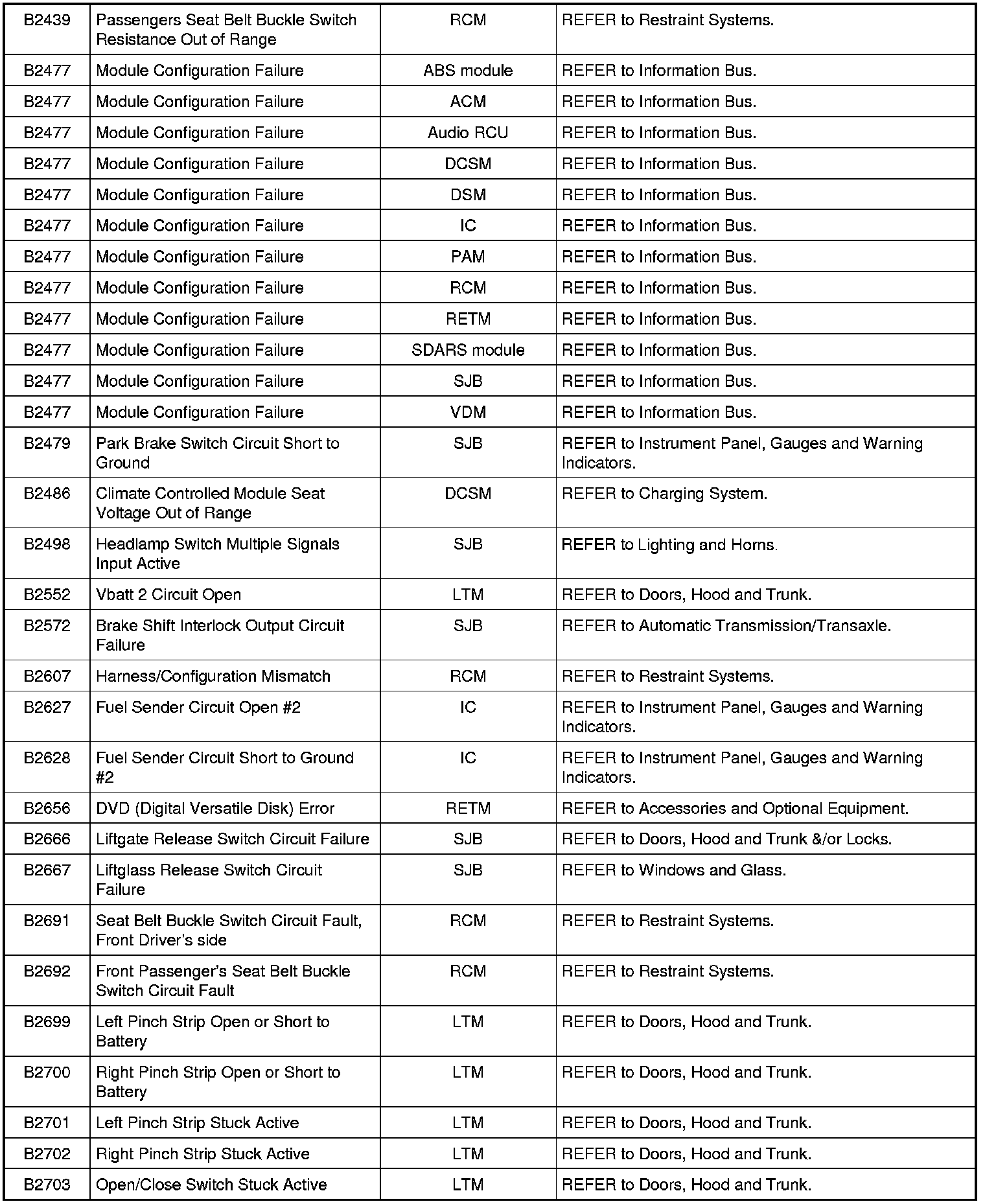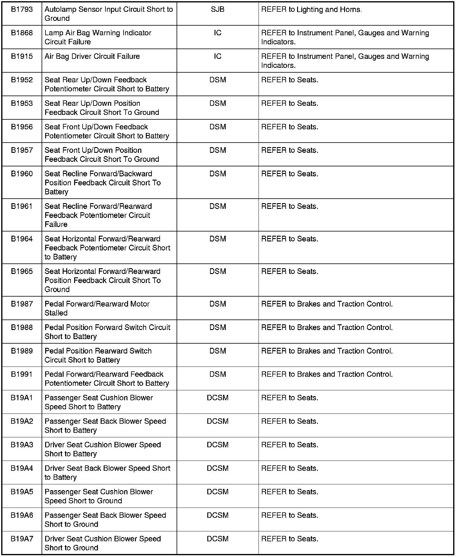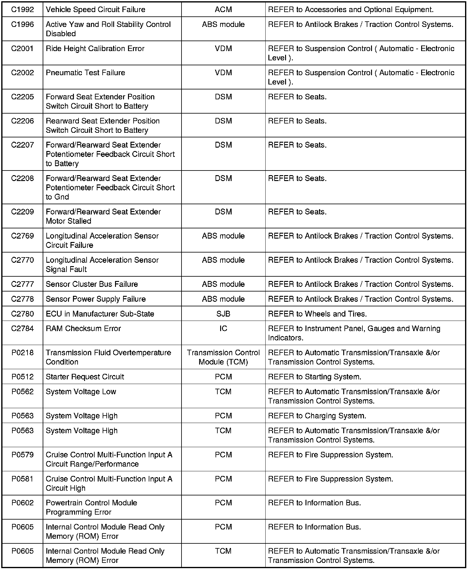 NOTE: Some of these modules utilize a 5-character DTC followed by a 2-character failure-type code. The failure-type code provides information about specific fault conditions such as opens, or shorts to ground. Continuous memory DTCs have an additional 2-character DTC status code suffix to assist in determining DTC history.
