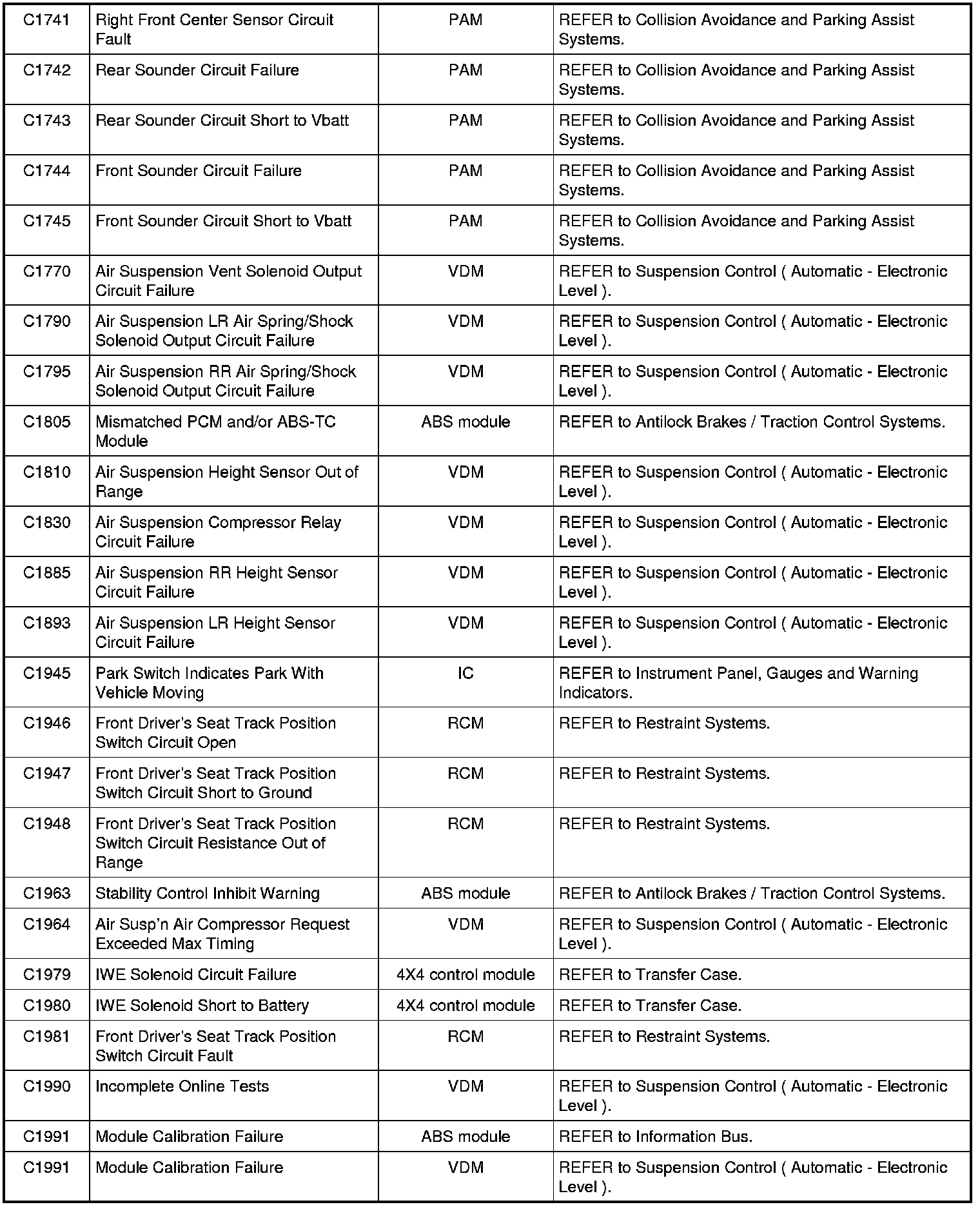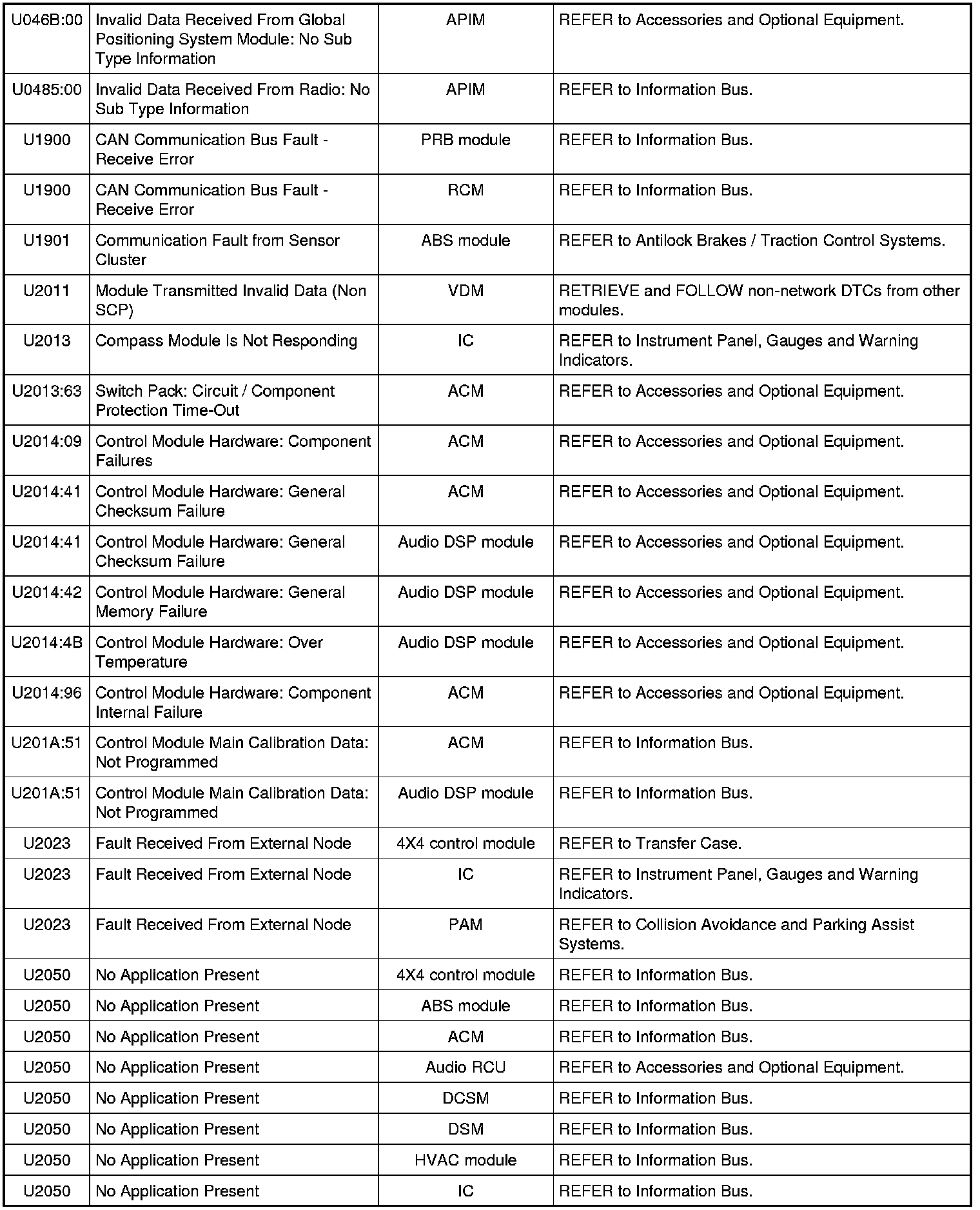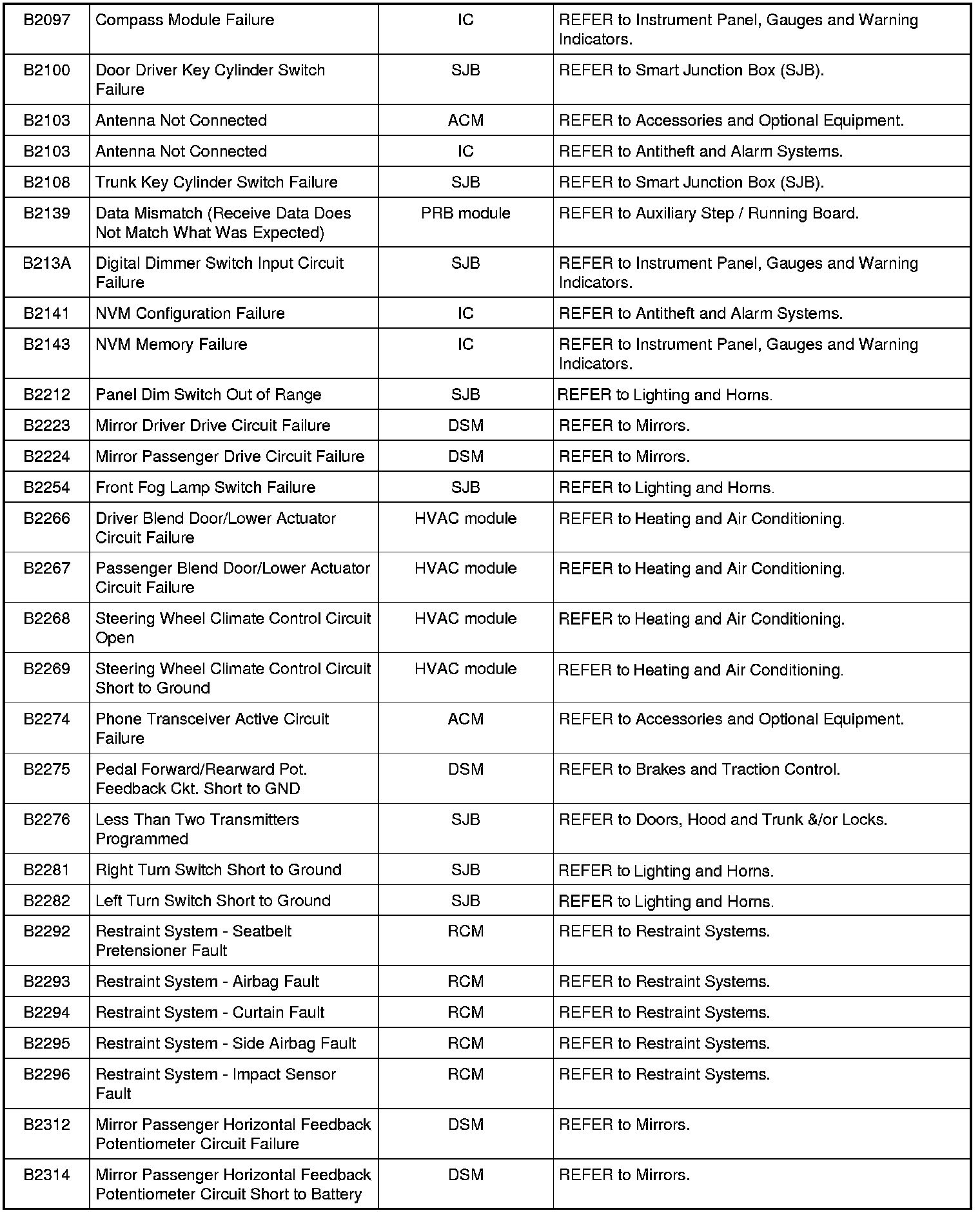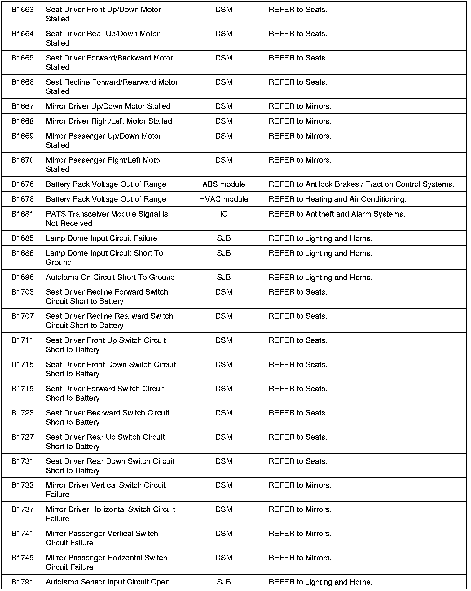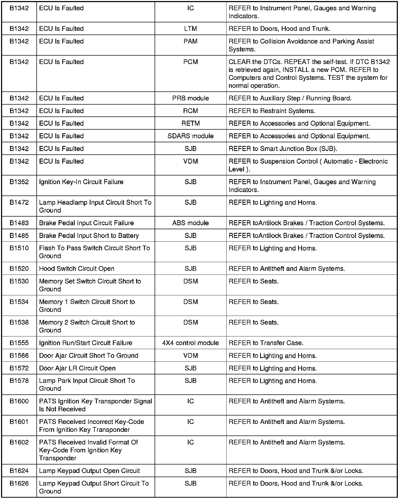 NOTE: Some of these modules utilize a 5-character DTC followed by a 2-character failure-type code. The failure-type code provides information about specific fault conditions such as opens, or shorts to ground. Continuous memory DTCs have an additional 2-character DTC status code suffix to assist in determining DTC history.