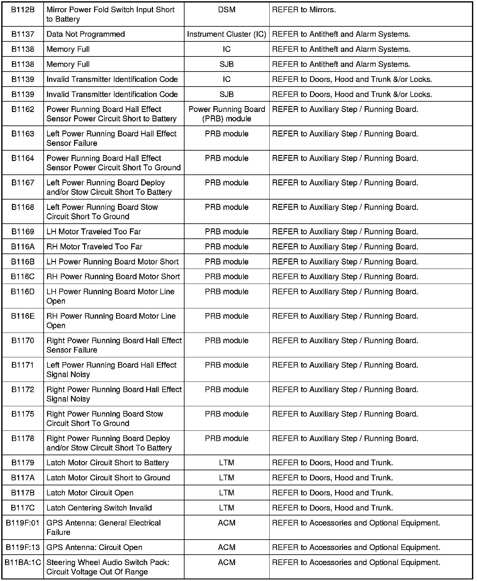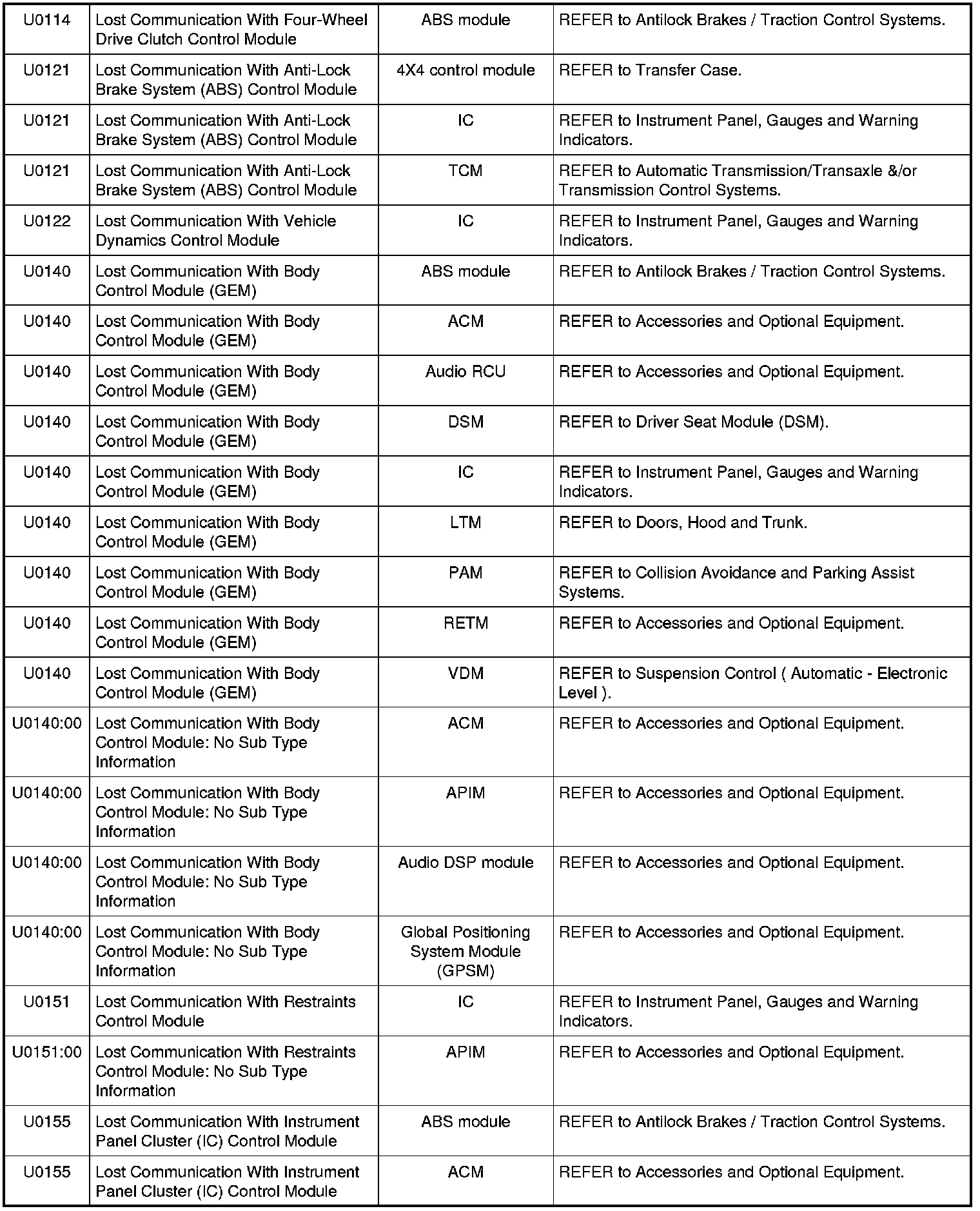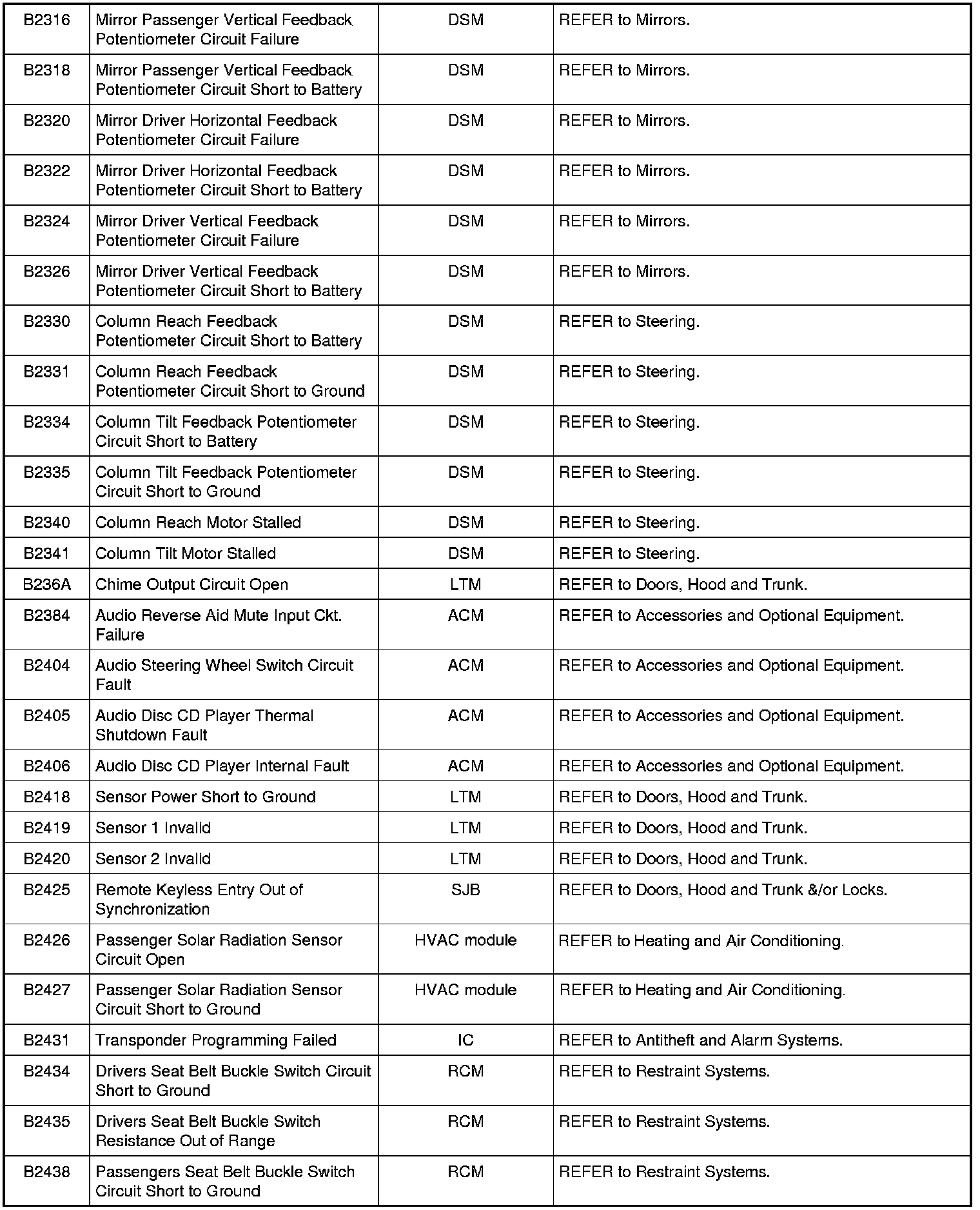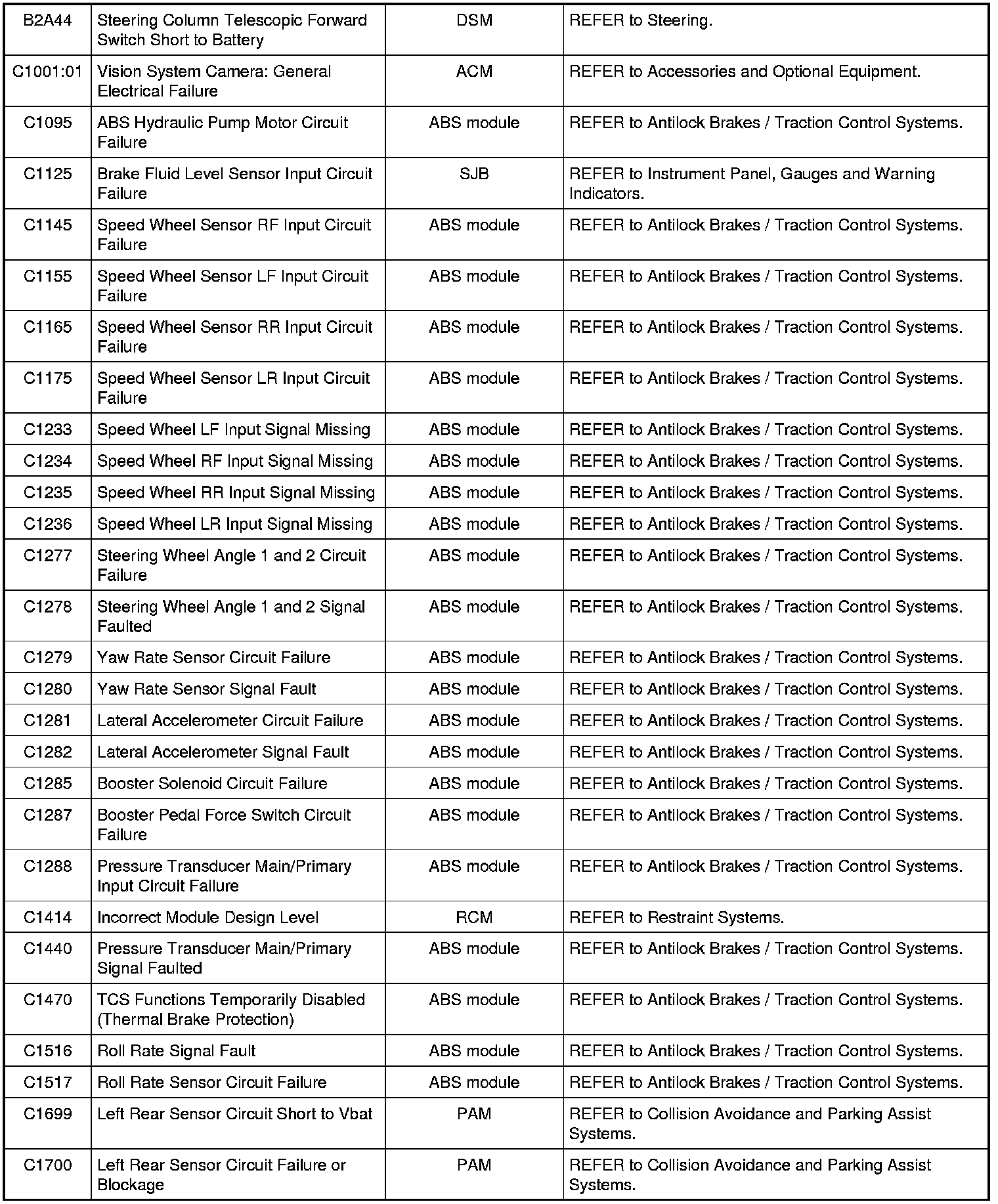 NOTE: Some of these modules utilize a 5-character DTC followed by a 2-character failure-type code. The failure-type code provides information about specific fault conditions such as opens, or shorts to ground. Continuous memory DTCs have an additional 2-character DTC status code suffix to assist in determining DTC history.