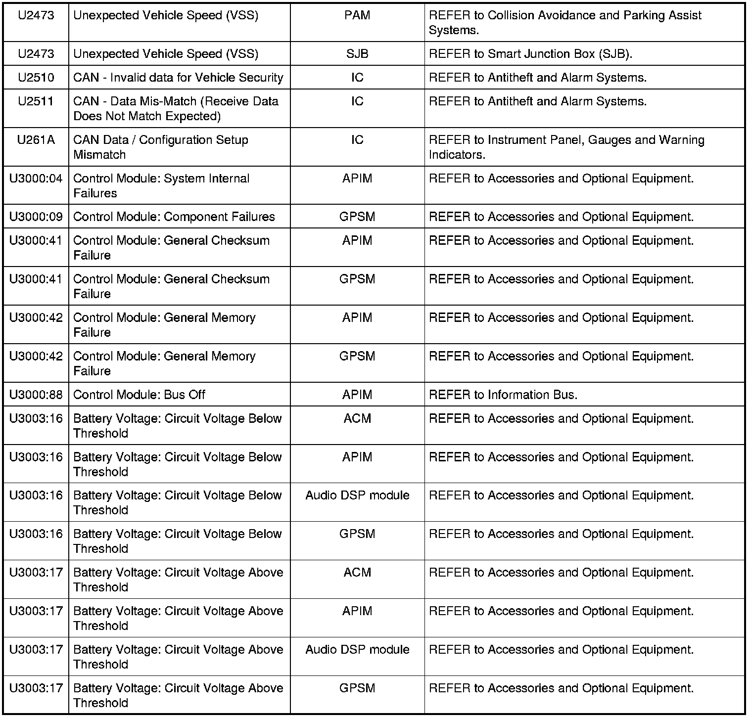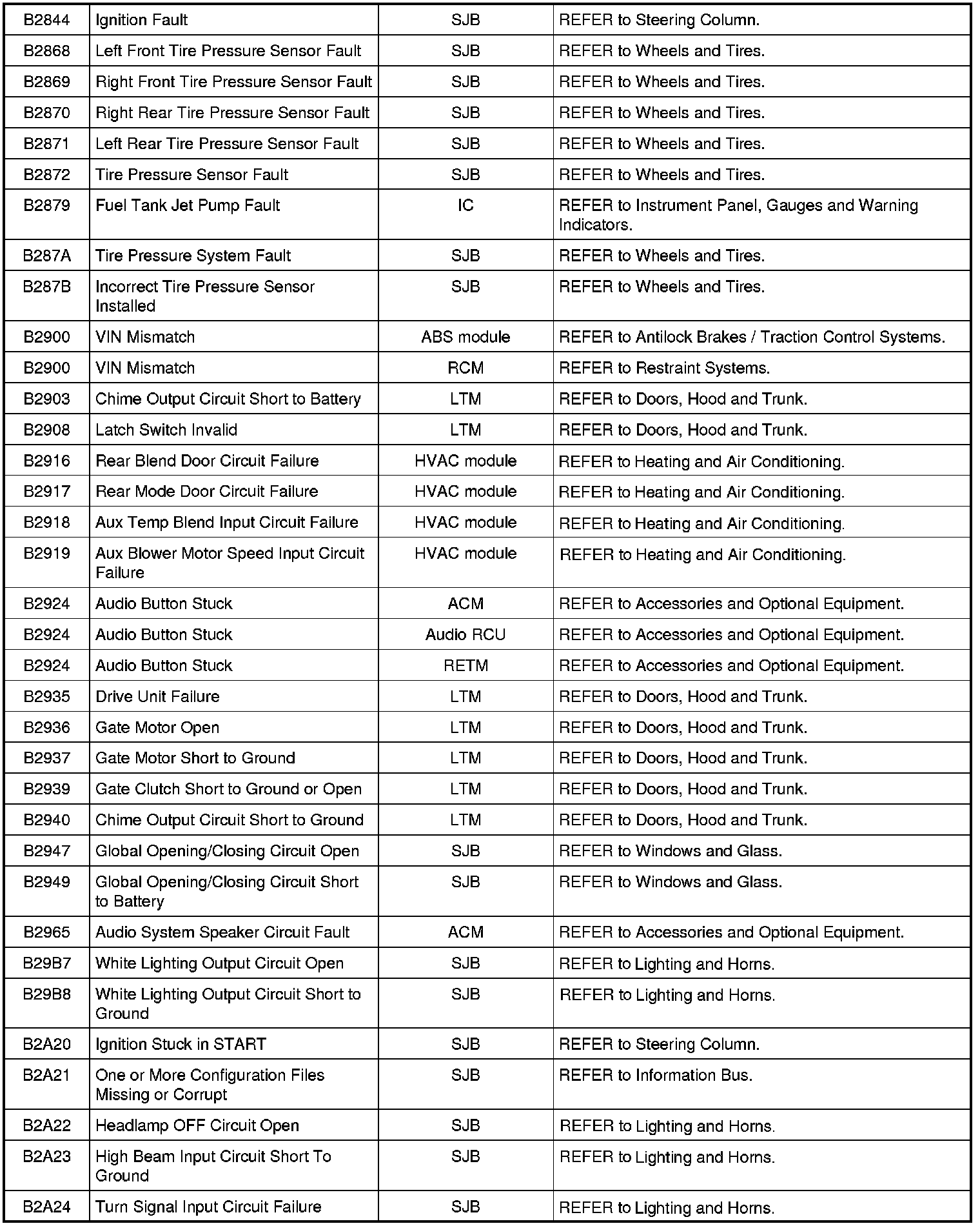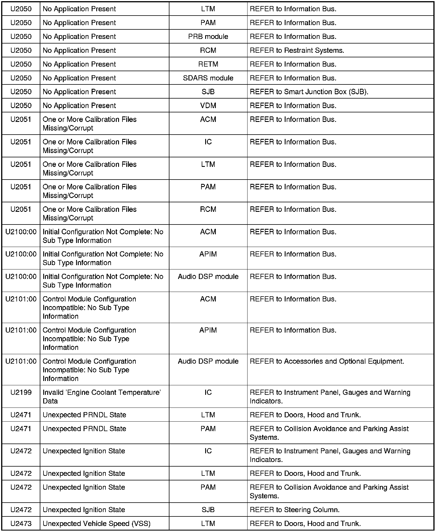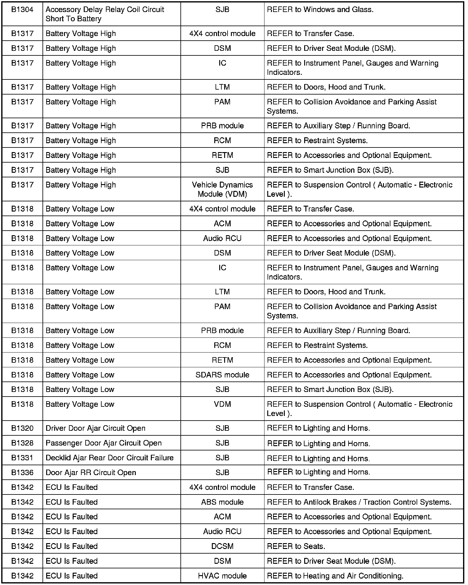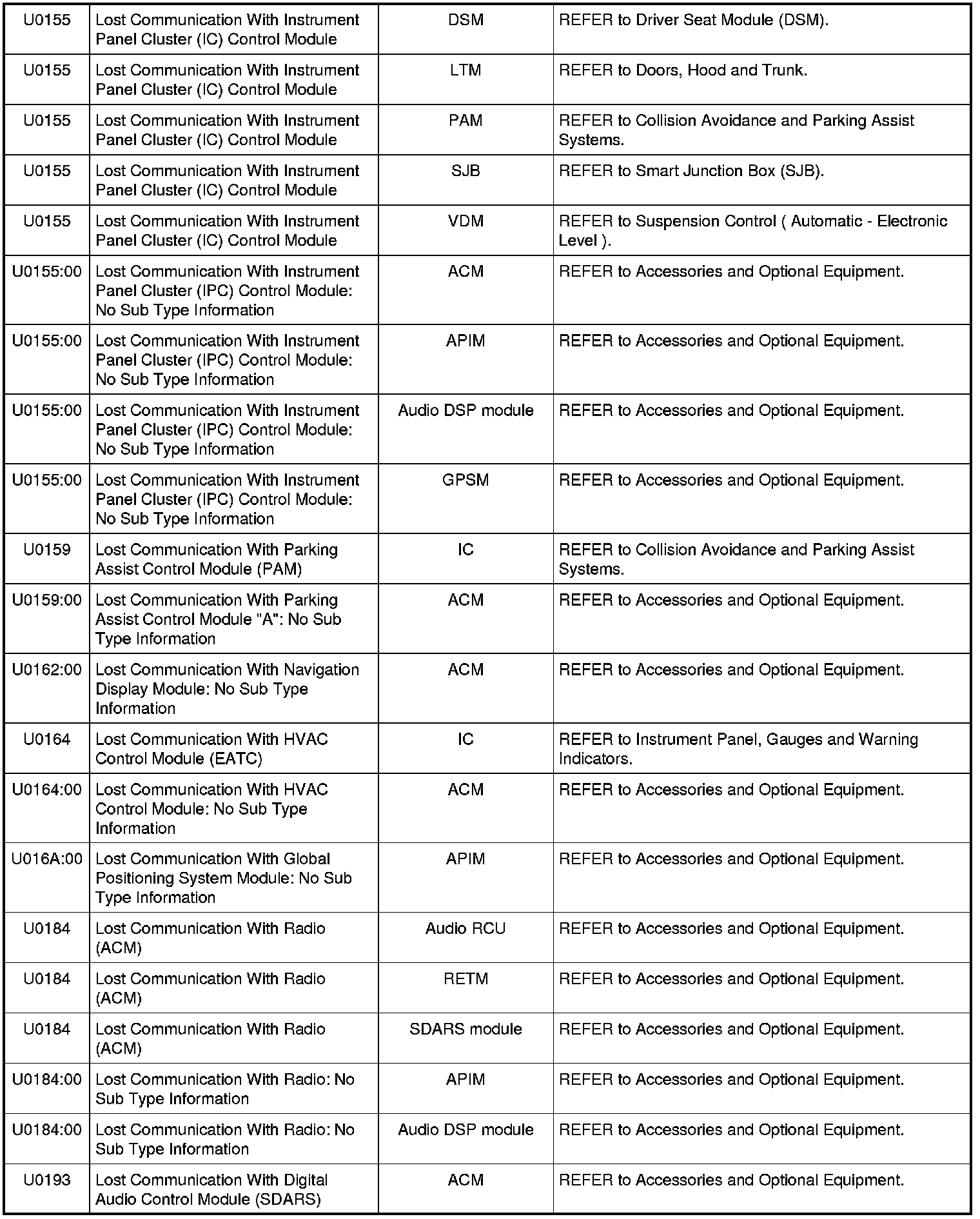 NOTE: Some of these modules utilize a 5-character DTC followed by a 2-character failure-type code. The failure-type code provides information about specific fault conditions such as opens, or shorts to ground. Continuous memory DTCs have an additional 2-character DTC status code suffix to assist in determining DTC history.
