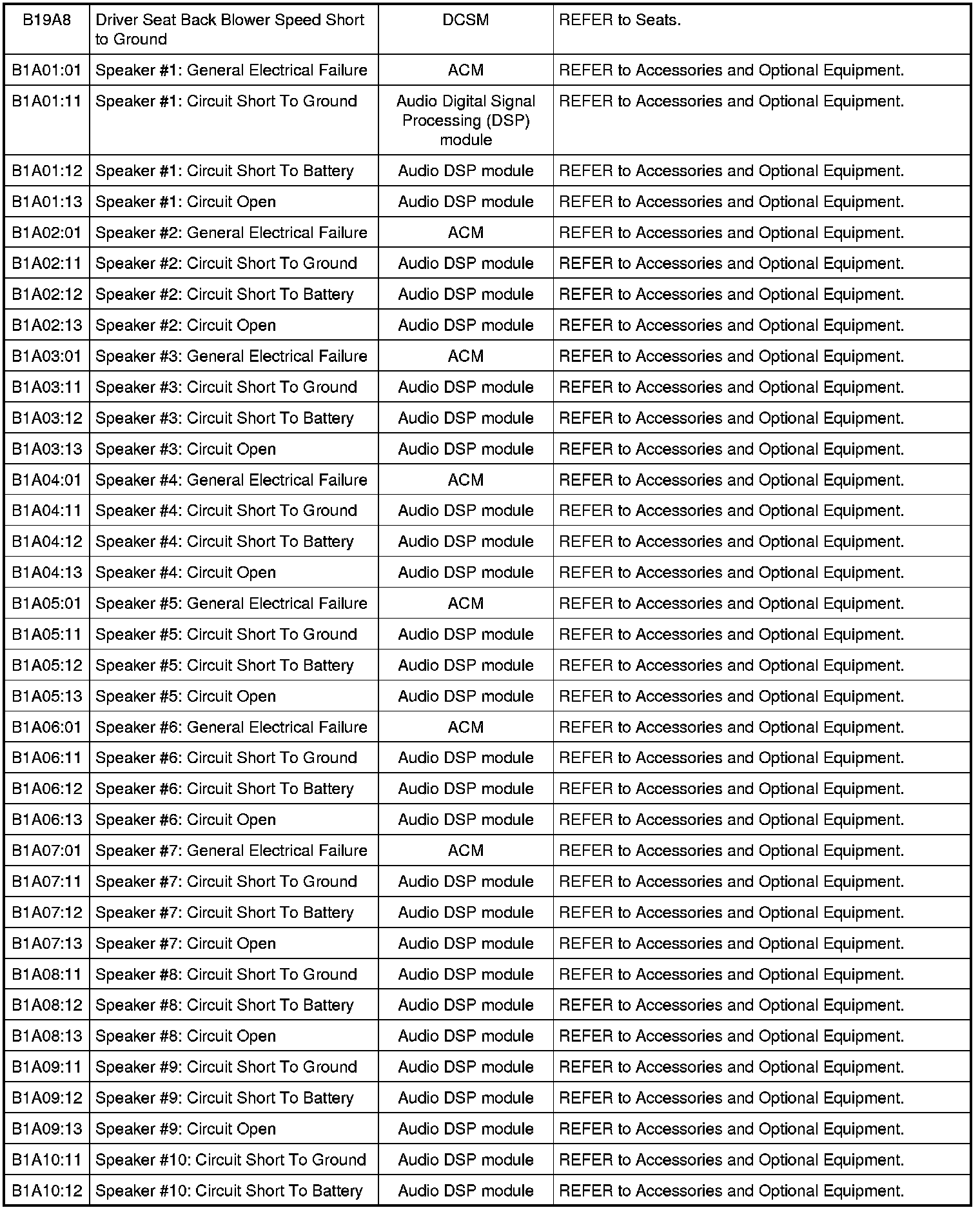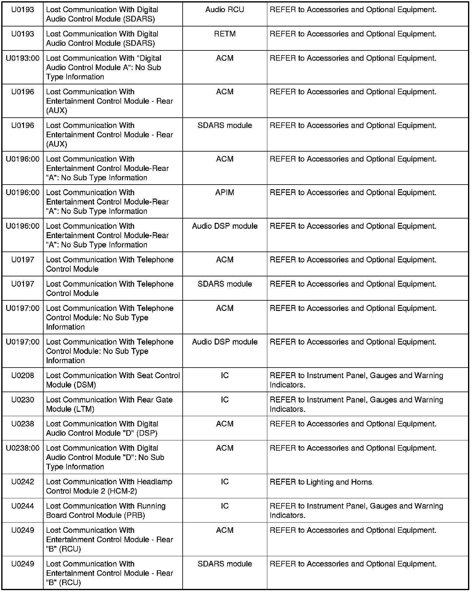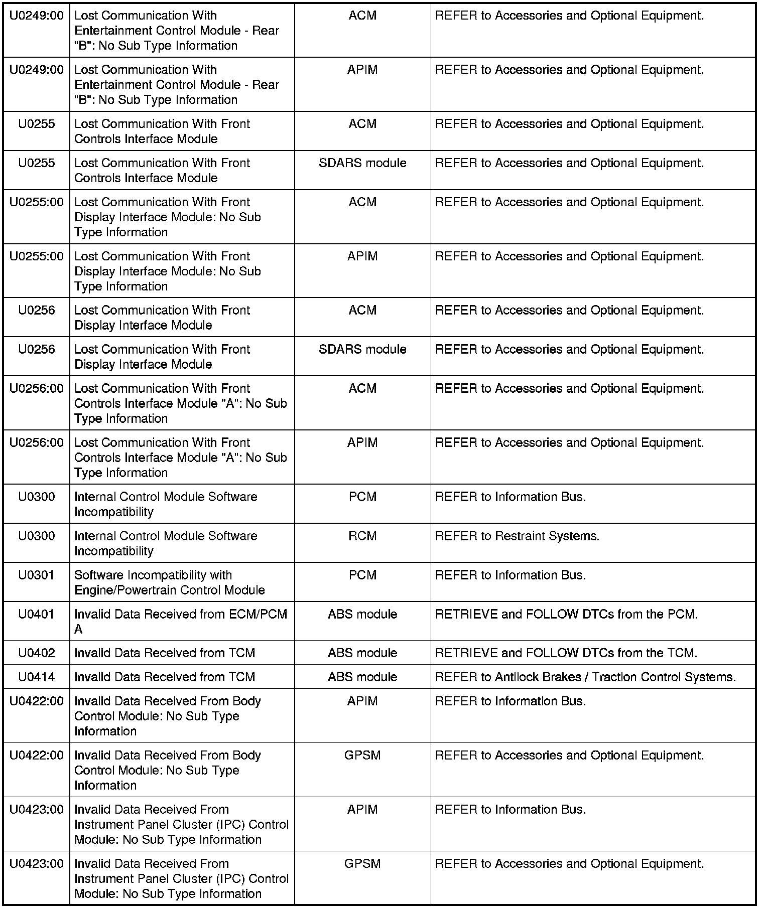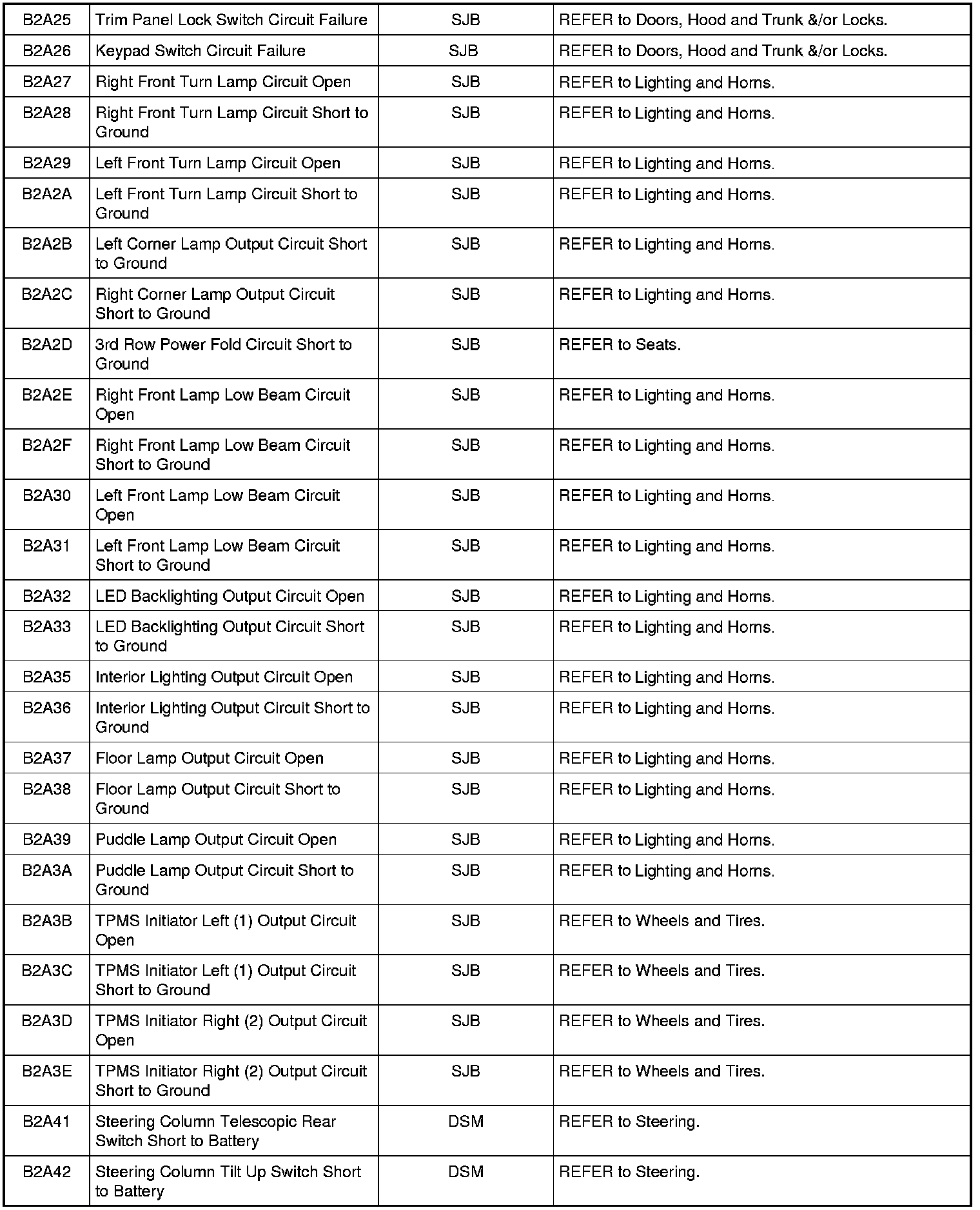 NOTE: Some of these modules utilize a 5-character DTC followed by a 2-character failure-type code. The failure-type code provides information about specific fault conditions such as opens, or shorts to ground. Continuous memory DTCs have an additional 2-character DTC status code suffix to assist in determining DTC history.