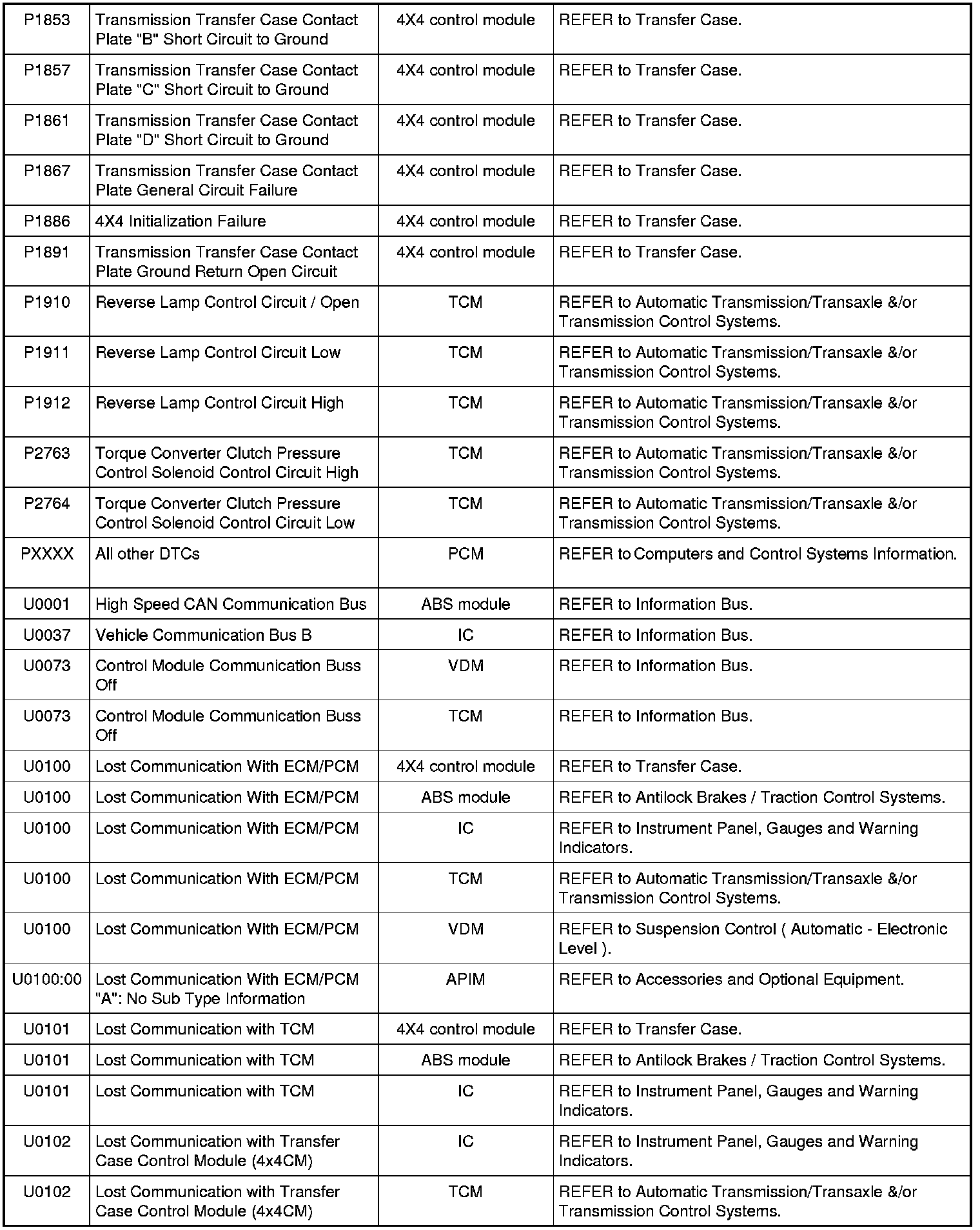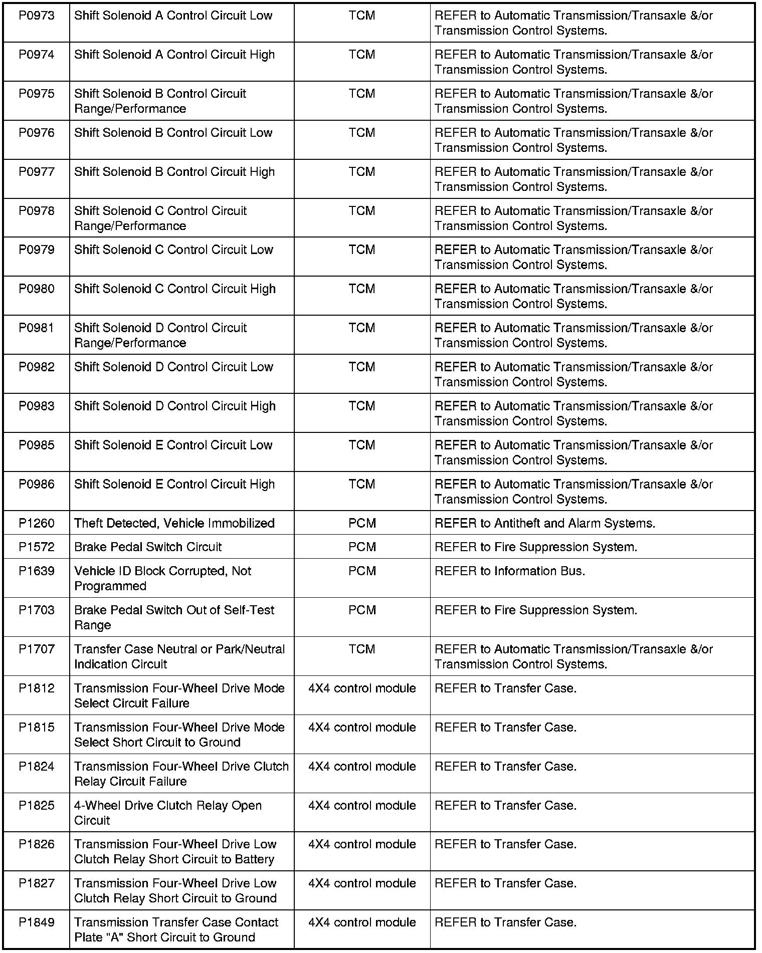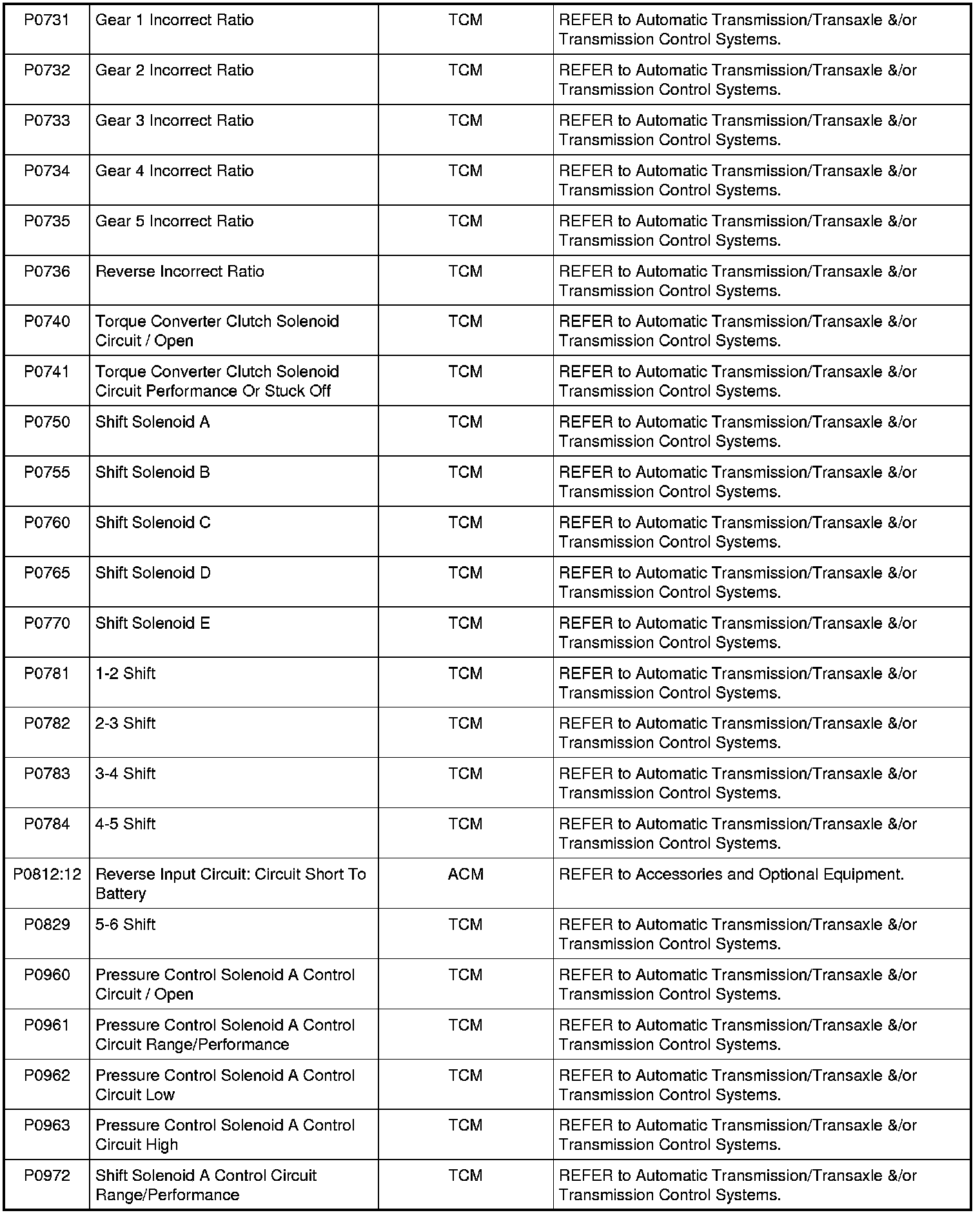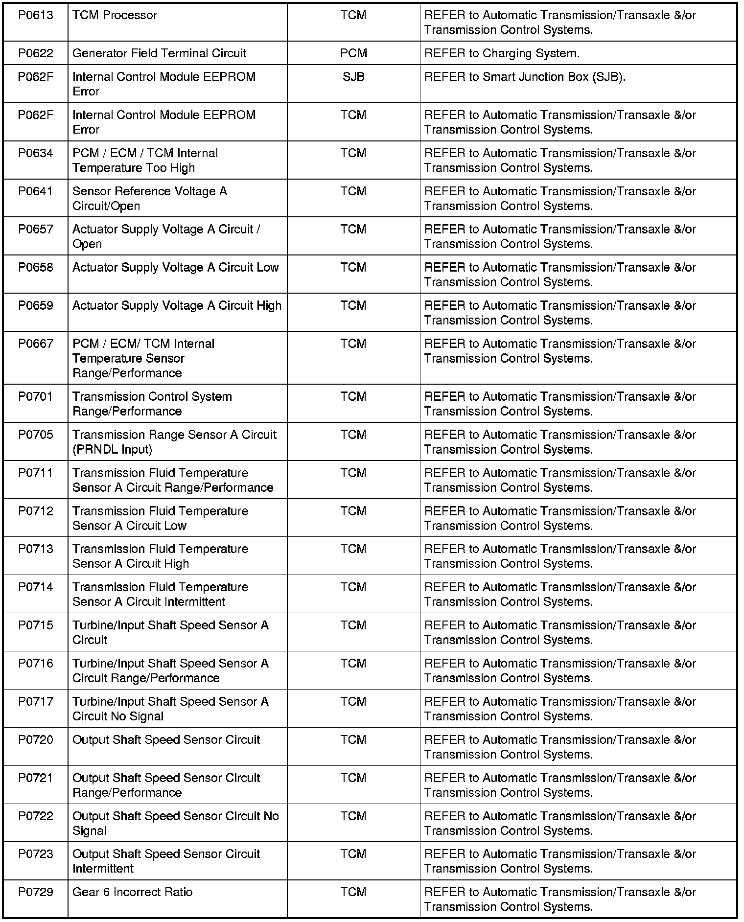 NOTE: Most powertrain (P-code) DTCs are diagnosed in Computers and Control Systems Information. If the P-code retrieved is not listed below, refer to Computers and Control Systems Information to continue diagnostics.