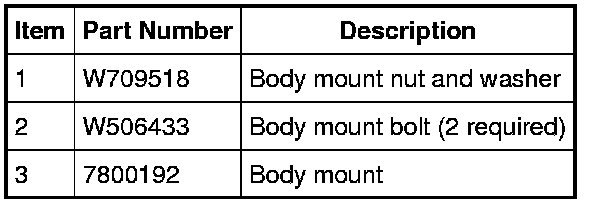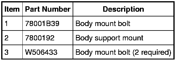 NOTE: No lubricants of any kind are to be used during body mount installation.