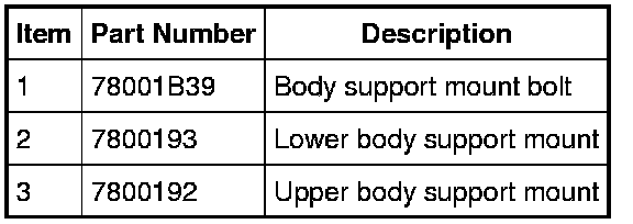 NOTE: Do not reuse body support mounting fasteners. New fasteners must be installed for each fastener that has been removed or loosened.