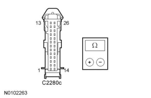 - Measure the resistance between the SJB, harness side and the keyless entry keypad, harness side as follows: